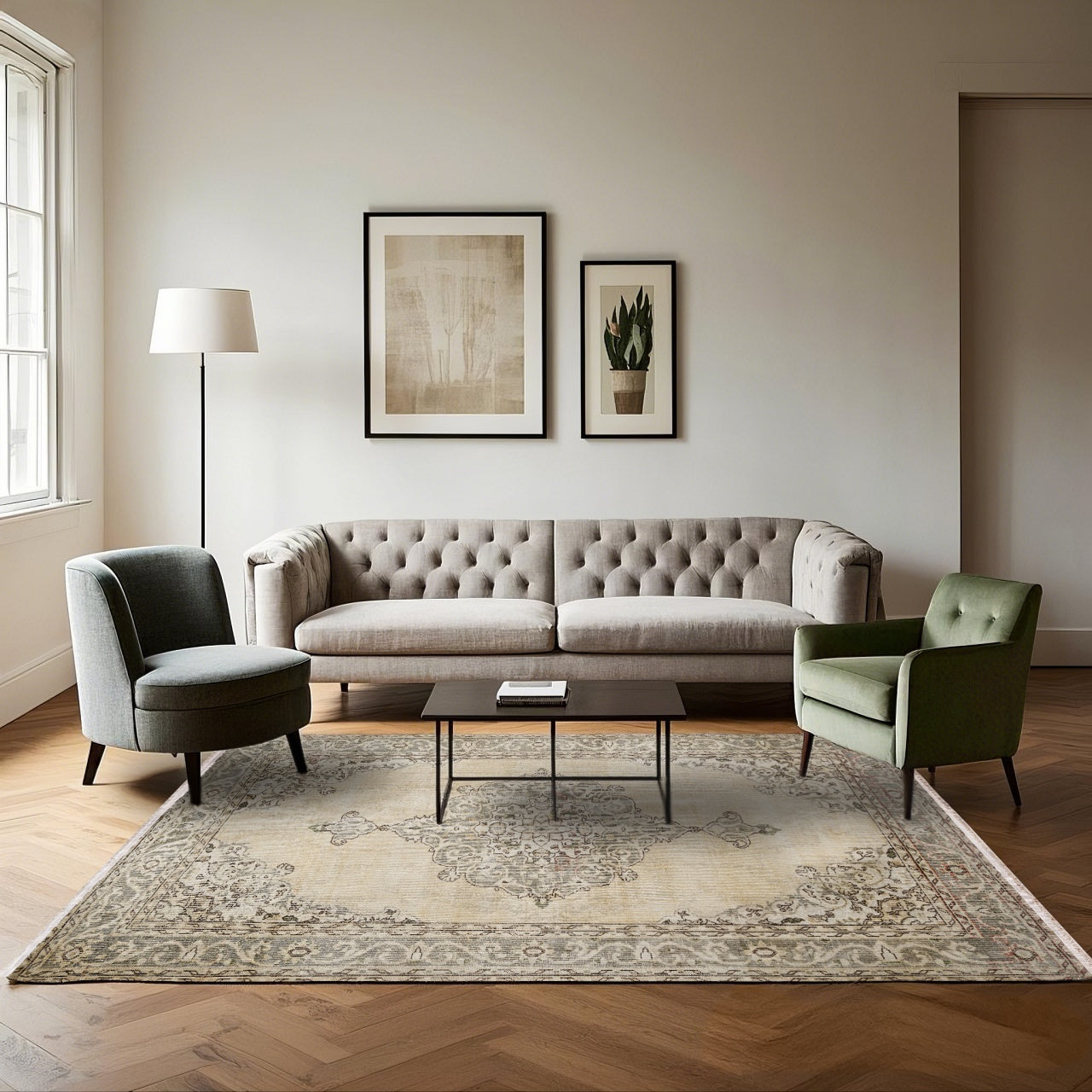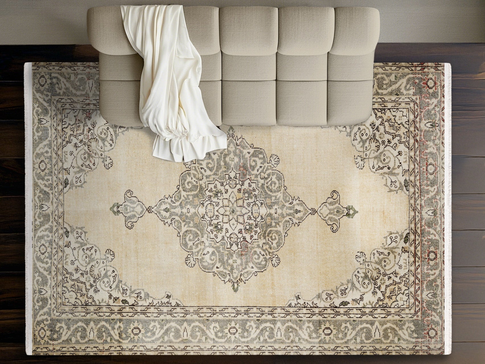 Vintage Gri Göbekli Yün ve Pamuk El Dokuma Halı 148x268