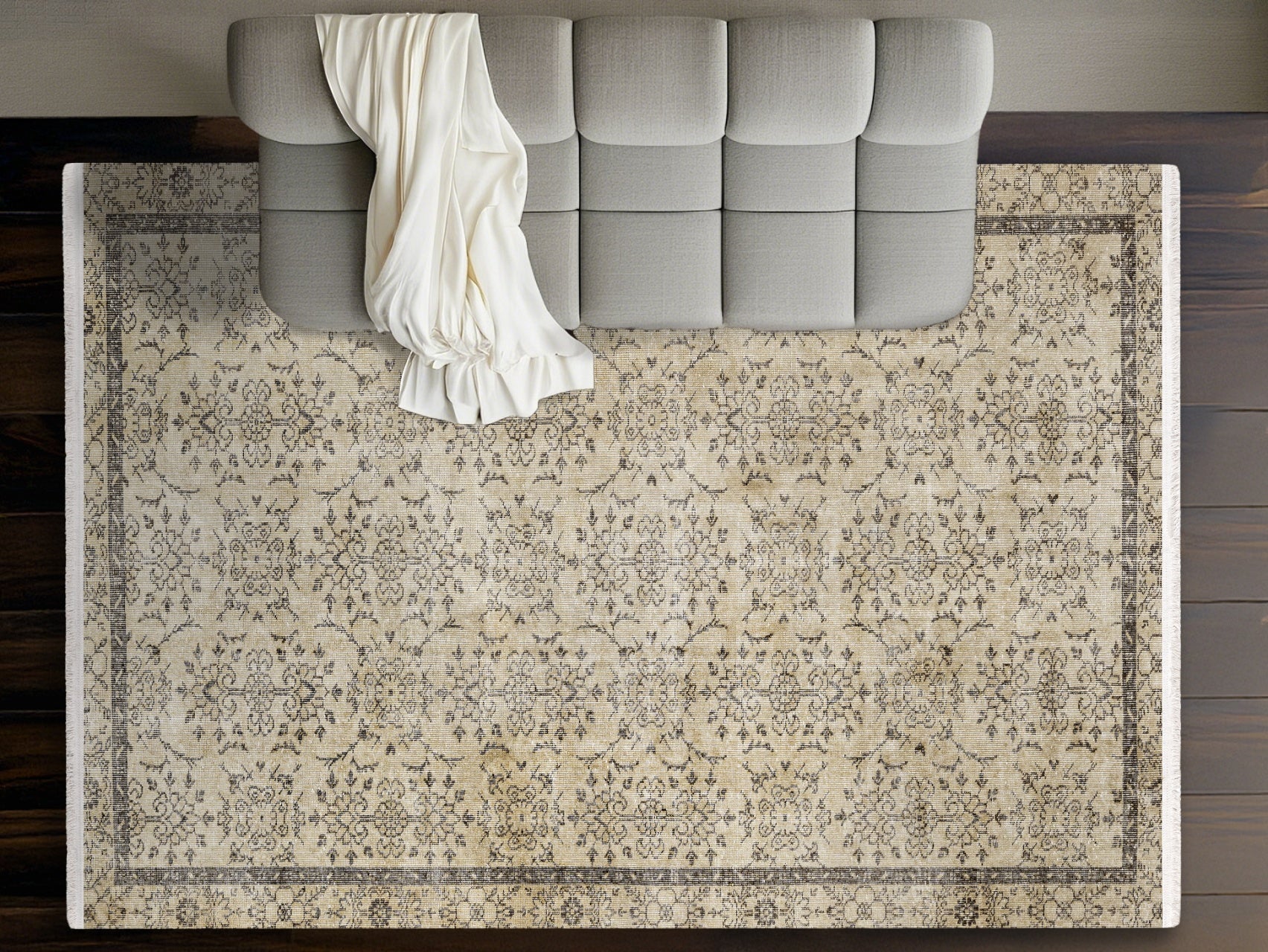 Vintage Kahverengi Çerçeveli Yün ve Pamuk El Dokuma Halı 174x244
