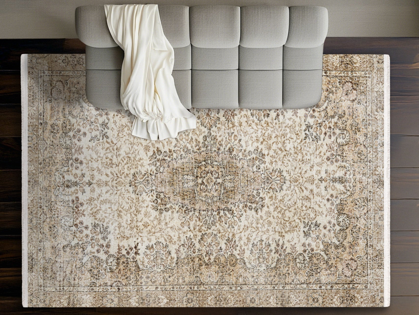 Vintage Kahverengi Göbekli Yün ve Pamuk El Dokuma Halı 161x290