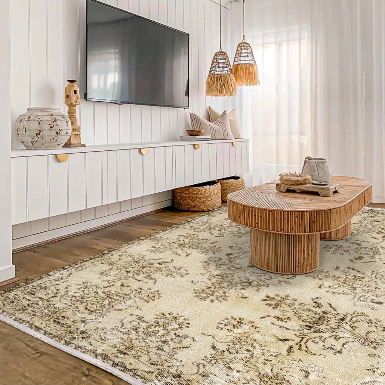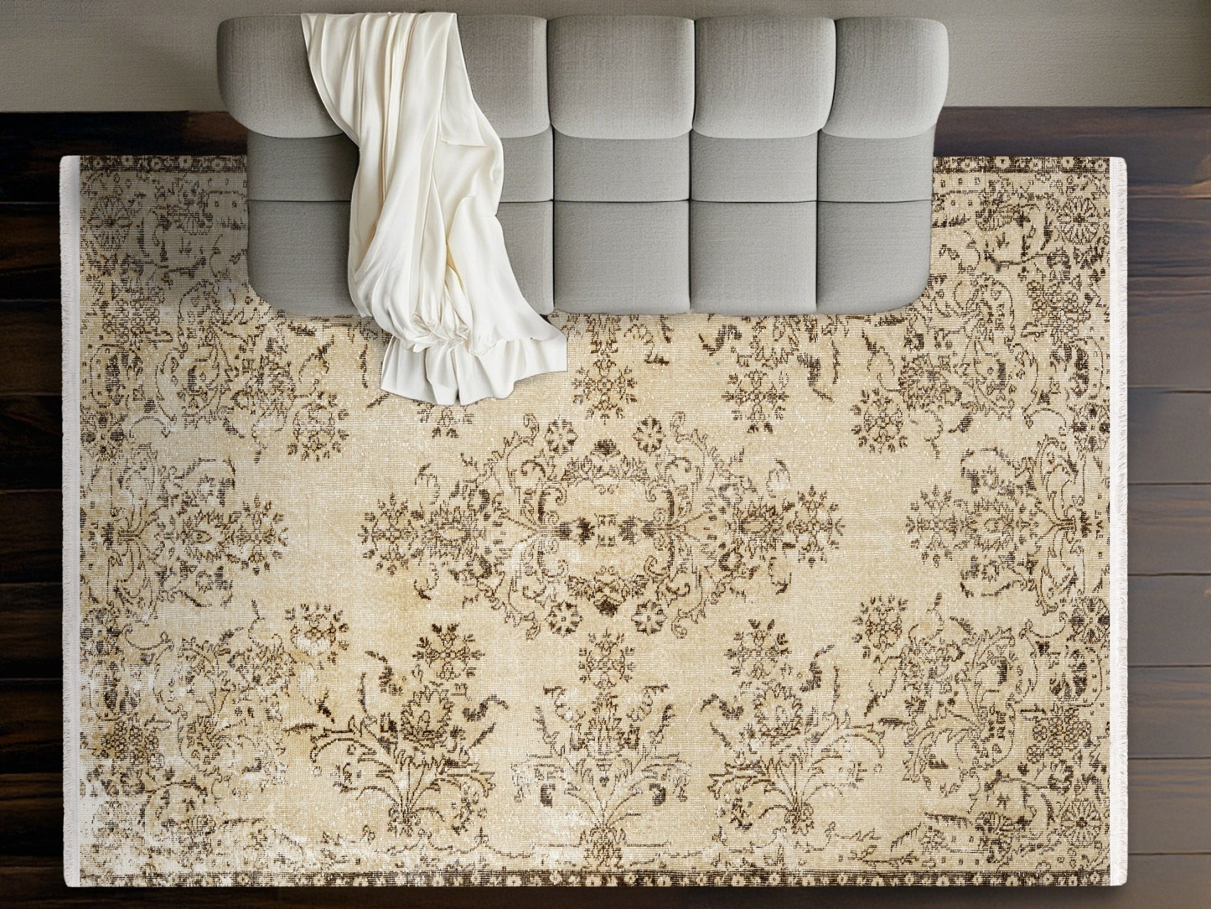 Vintage Kahverengi Göbekli Yün ve Pamuk El Dokuma Halı 166x282