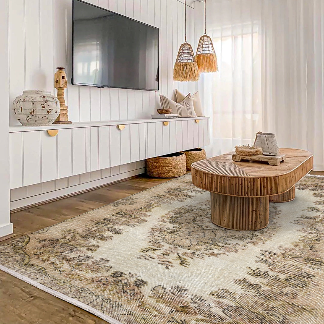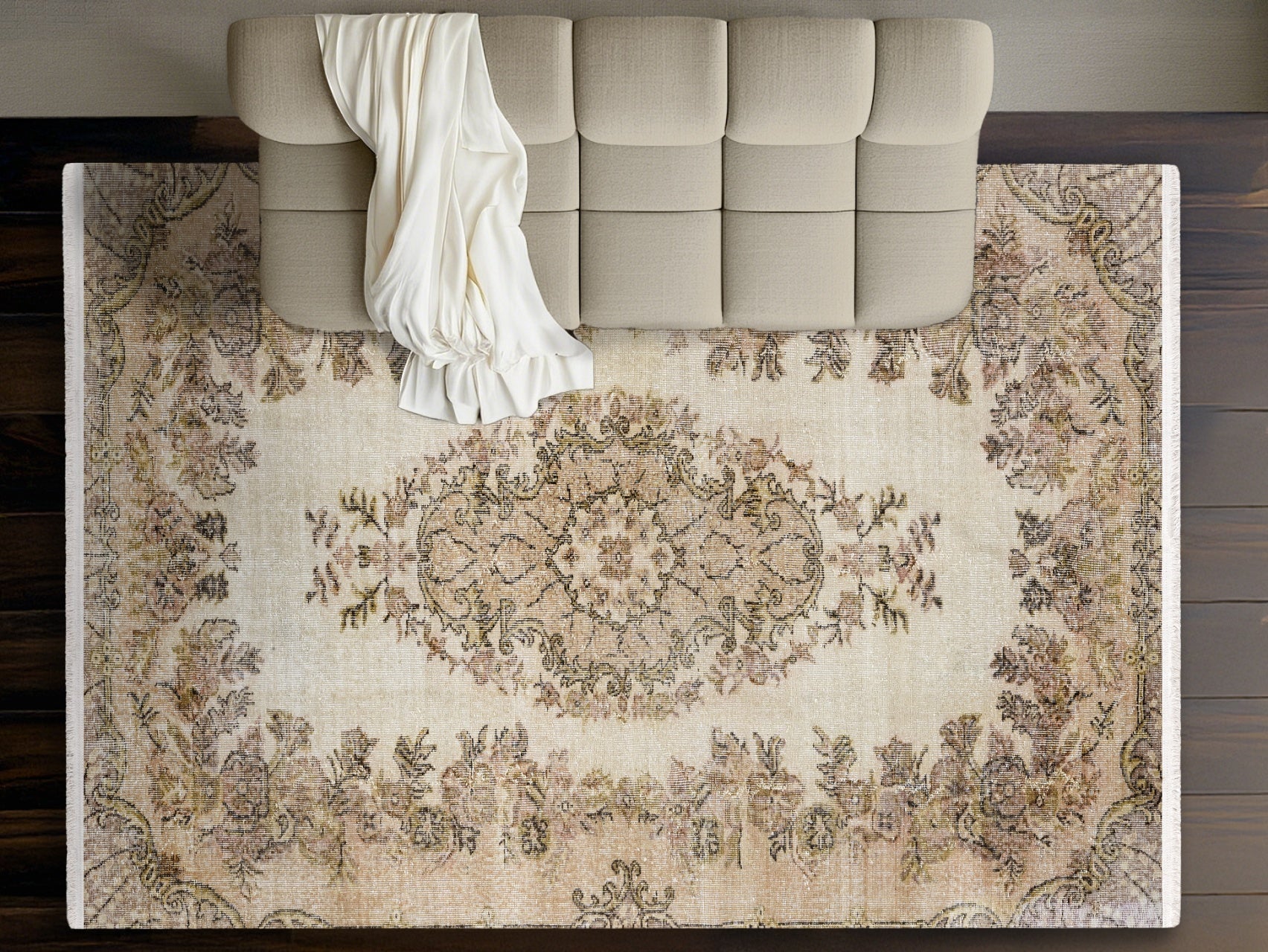 Vintage Kahverengi Göbekli Yün ve Pamuk El Dokuma Halı 184x288