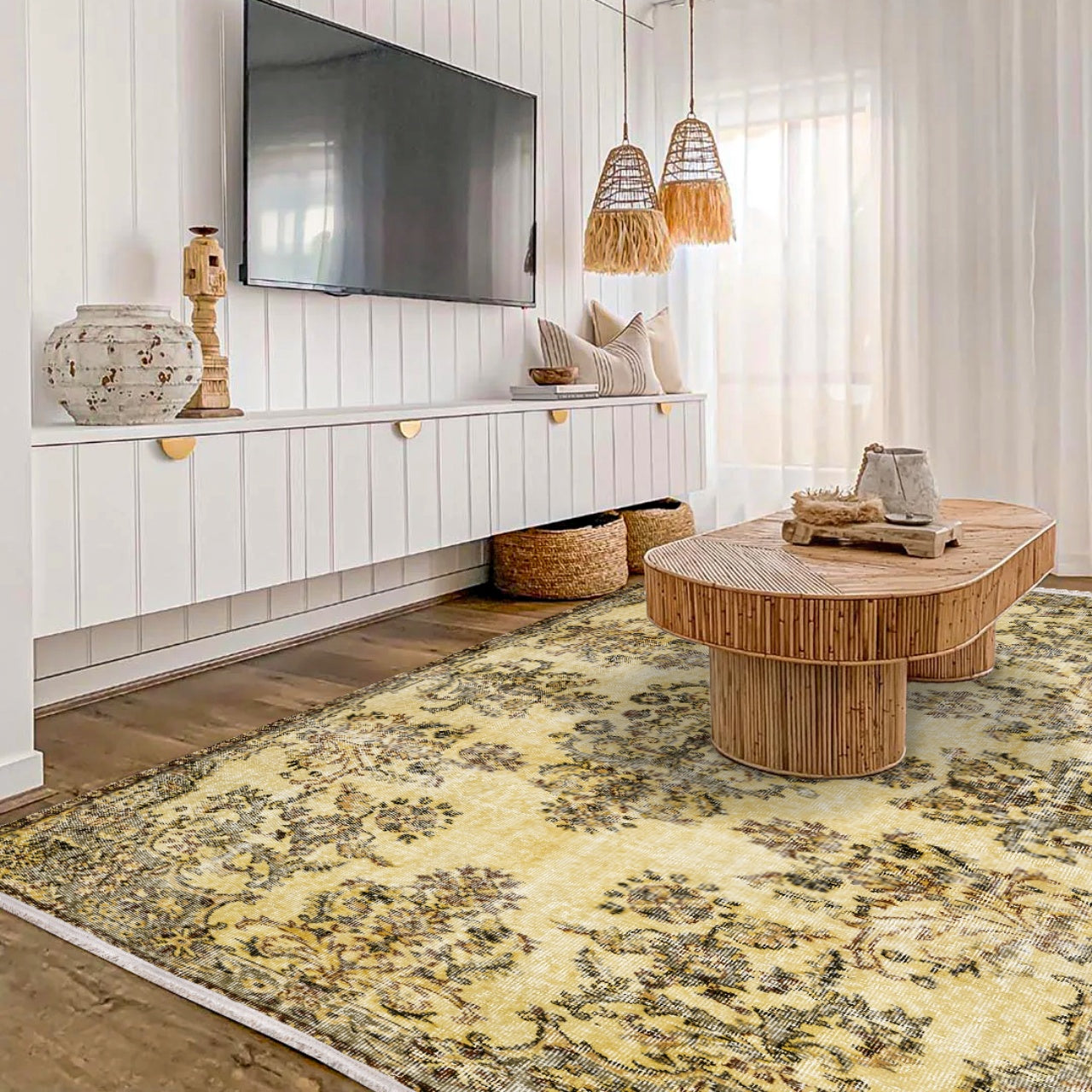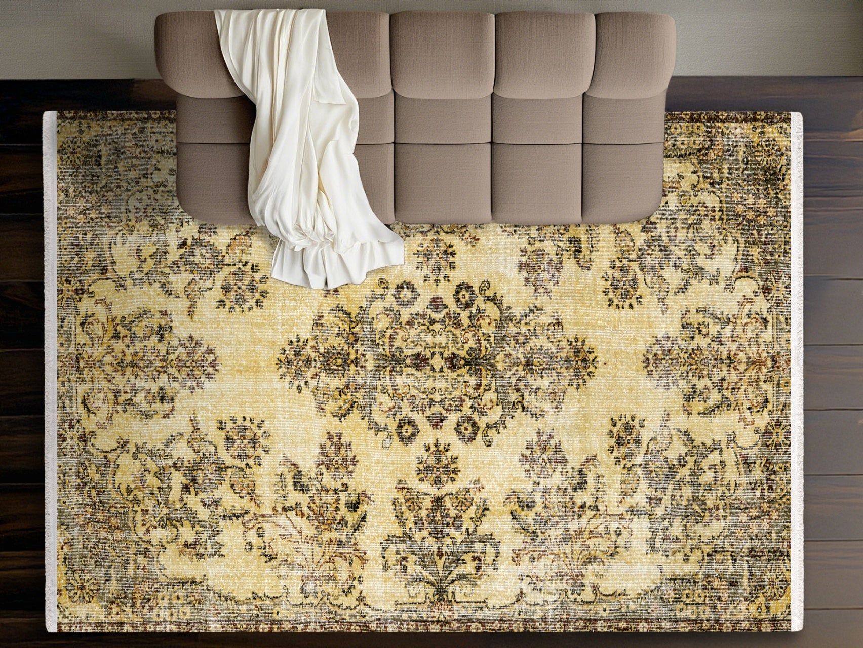Vintage Kahverengi Göbekli Yün ve Pamuk El Dokuma Halı 184x294