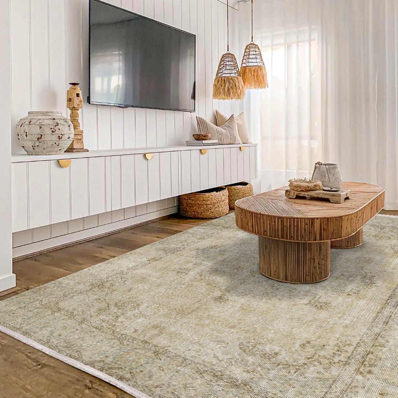 Vintage Kahverengi Göbekli Yün ve Pamuk El Dokuma Halı 203x310