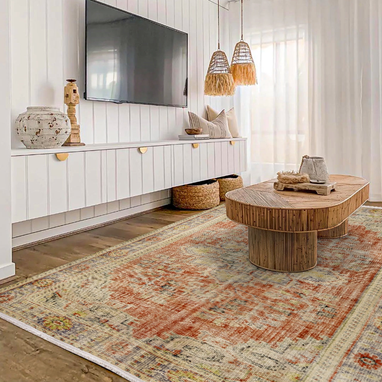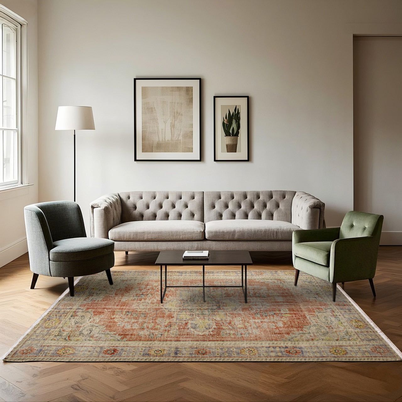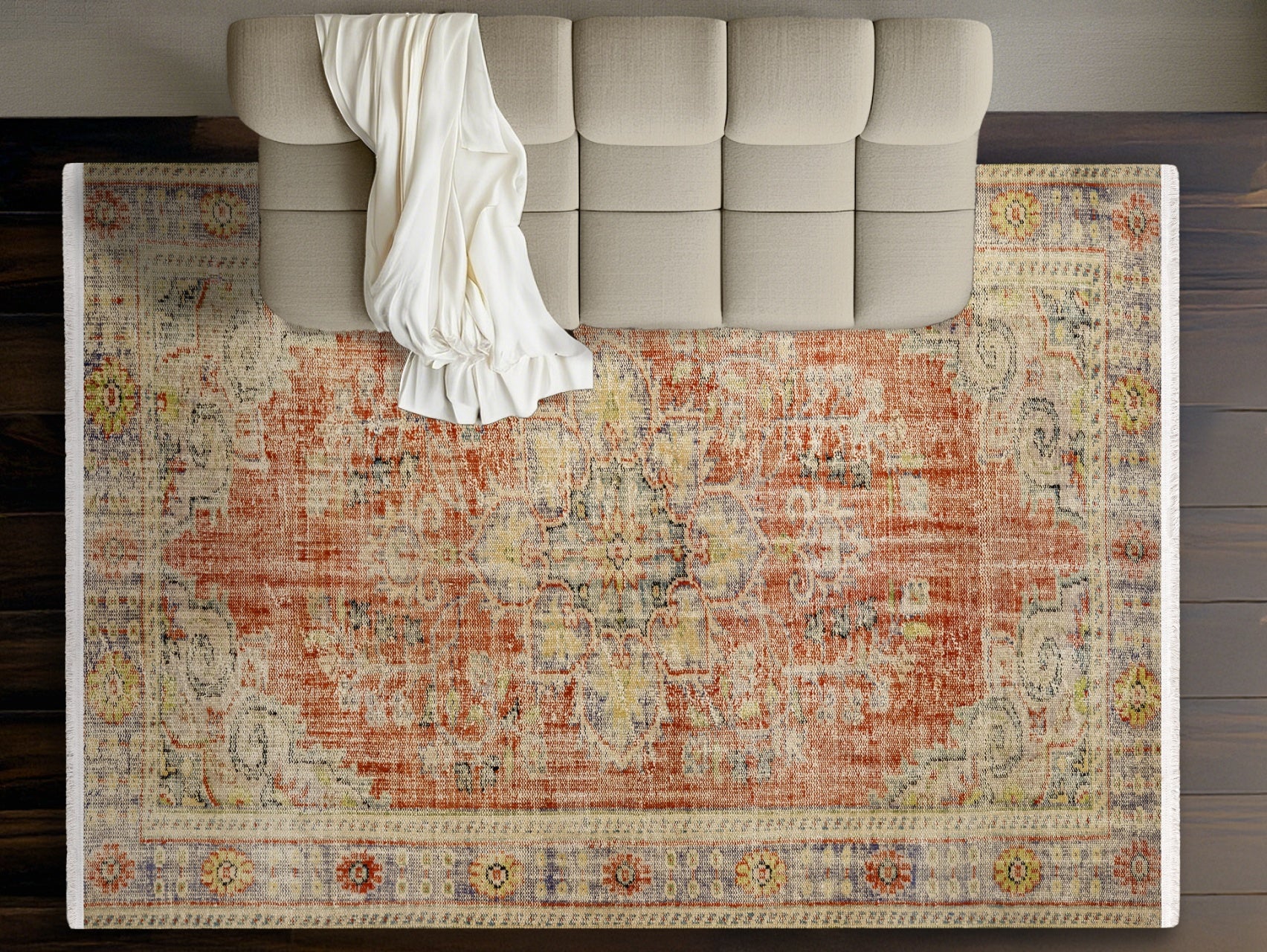 Vintage Kırmızı Göbekli Yün ve Pamuk El Dokuma Halı 188x247