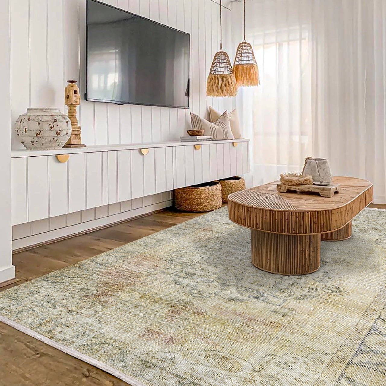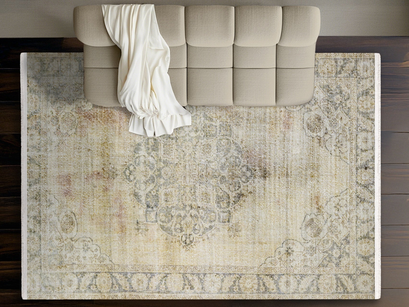 Vintage Krem Göbekli Yün ve Pamuk El Dokuma Halı 176x280