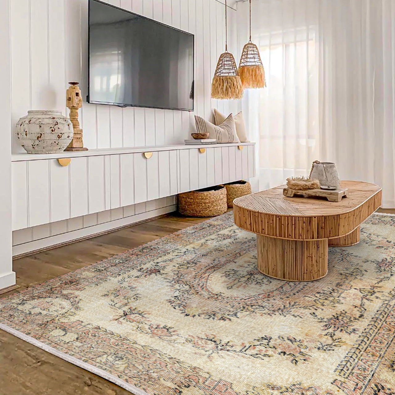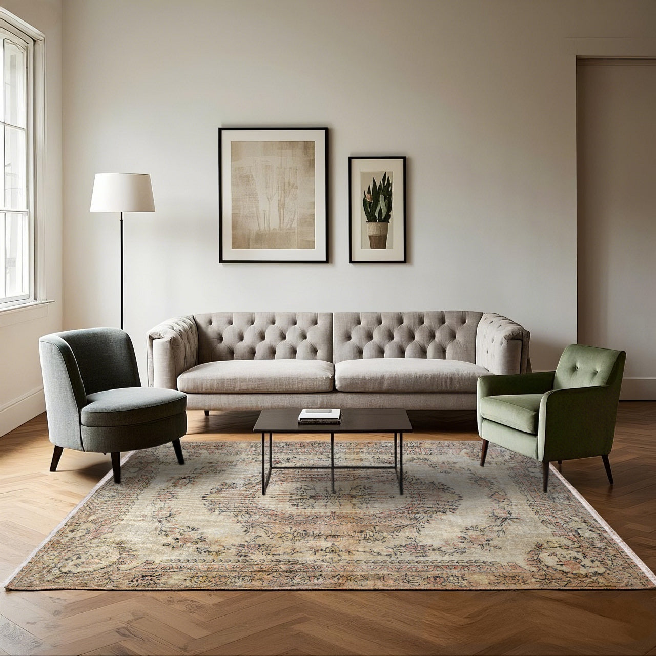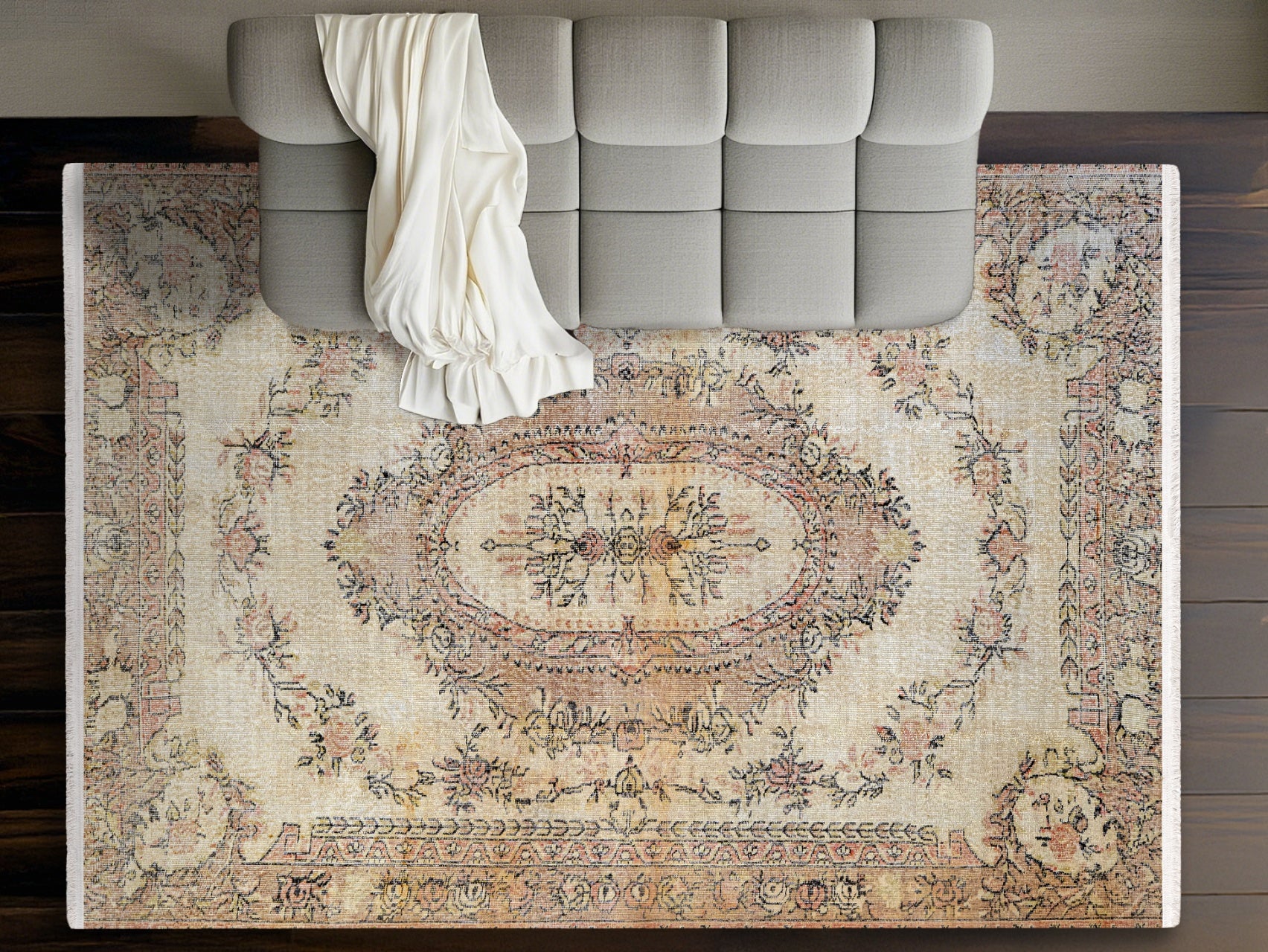 Vintage Krem Göbekli Yün ve Pamuk El Dokuma Halı 191x291