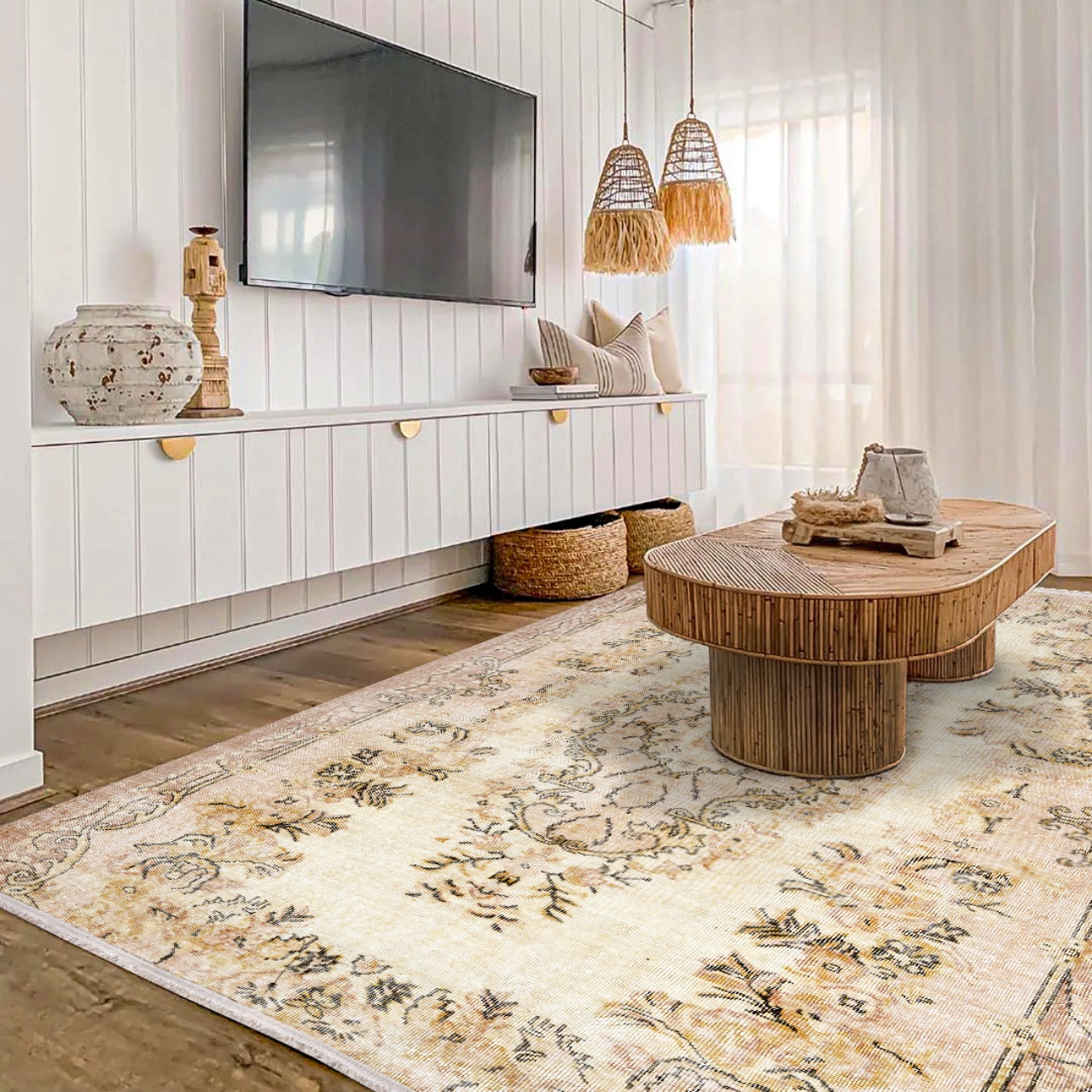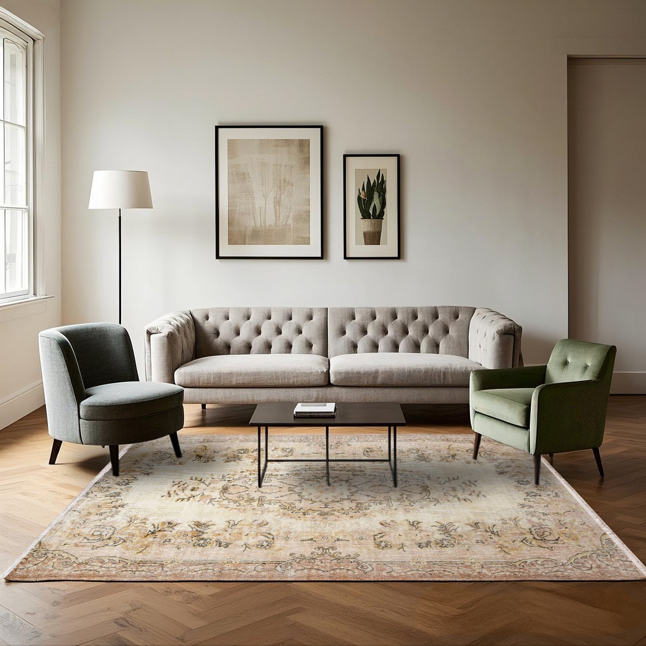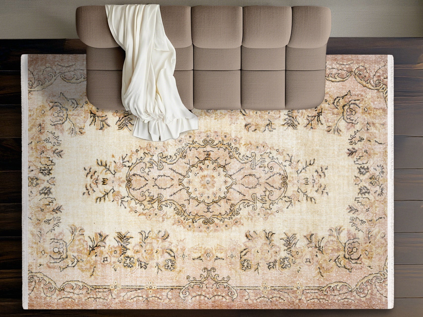 Vintage Krem Göbekli Yün ve Pamuk El Dokuma Halı 192x295