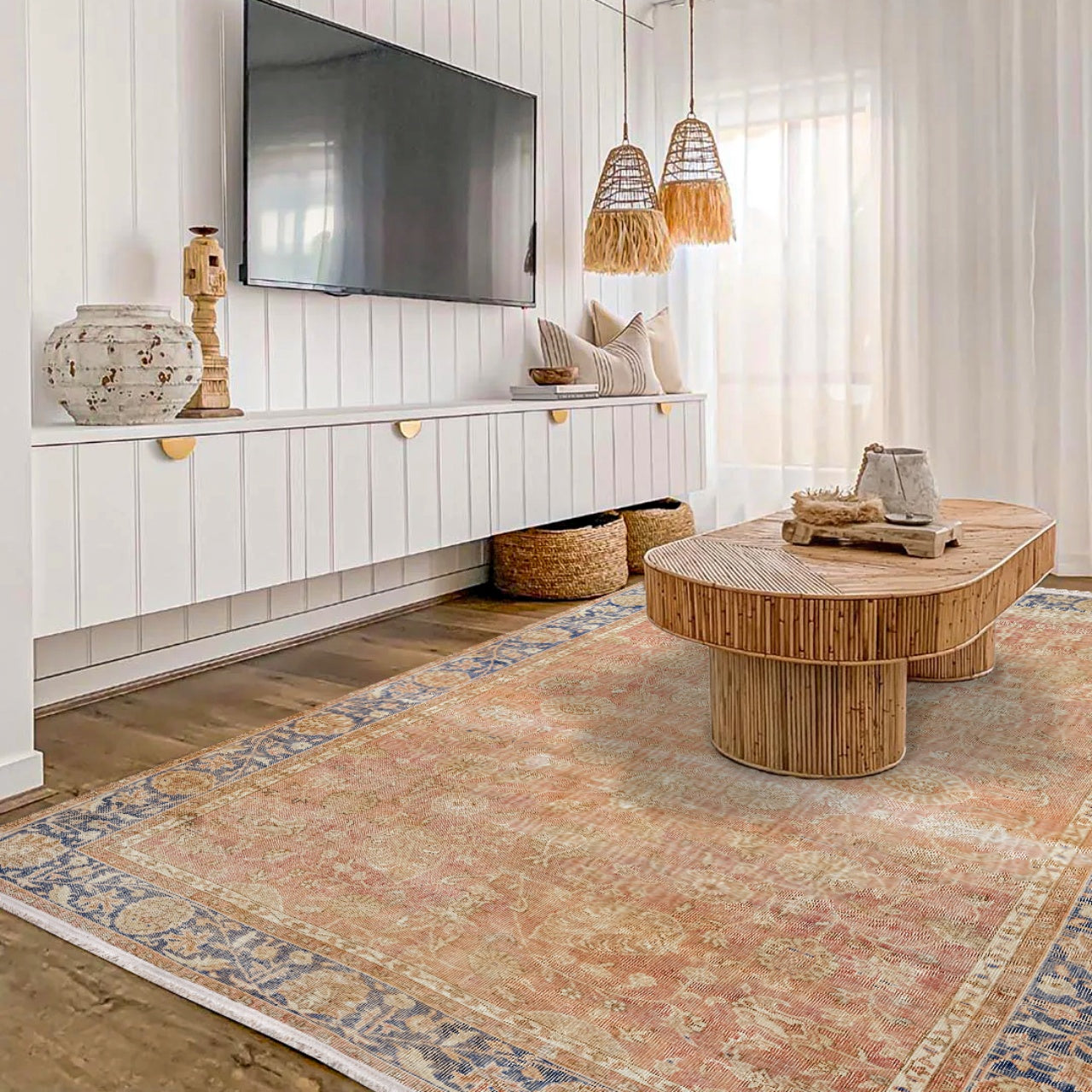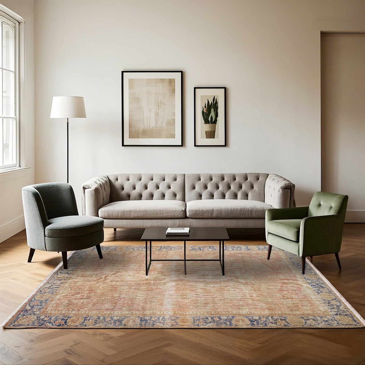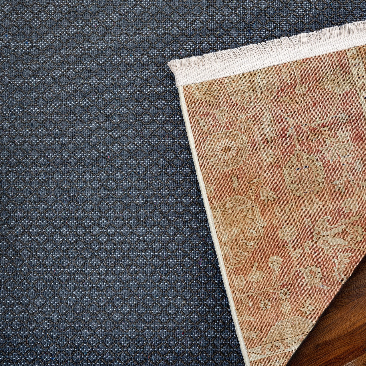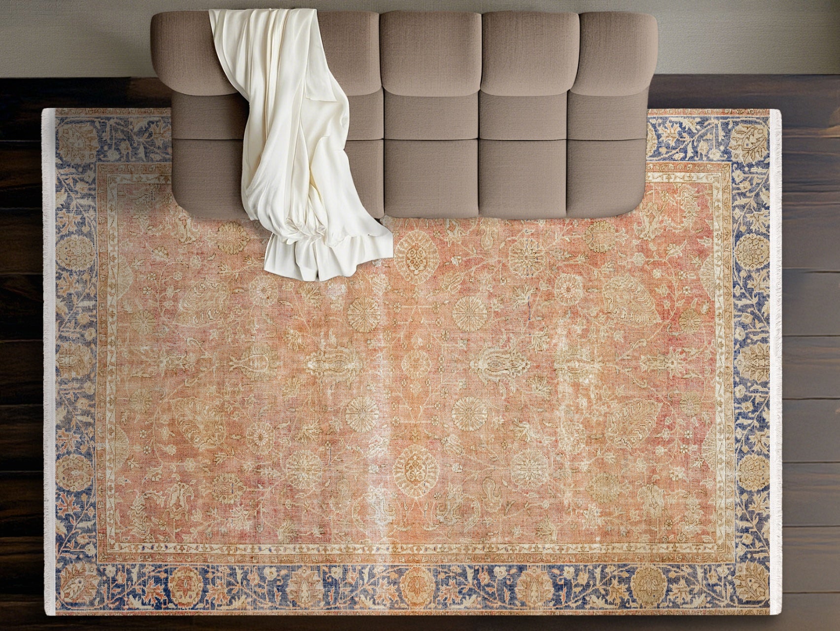 Vintage Lacivert Çerçeveli Yün ve Pamuk El Dokuma Halı 197x327