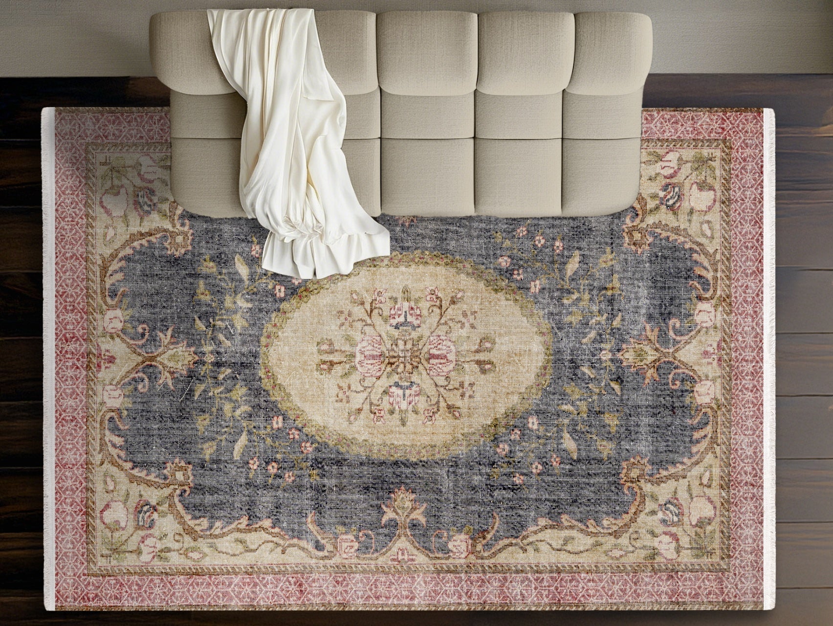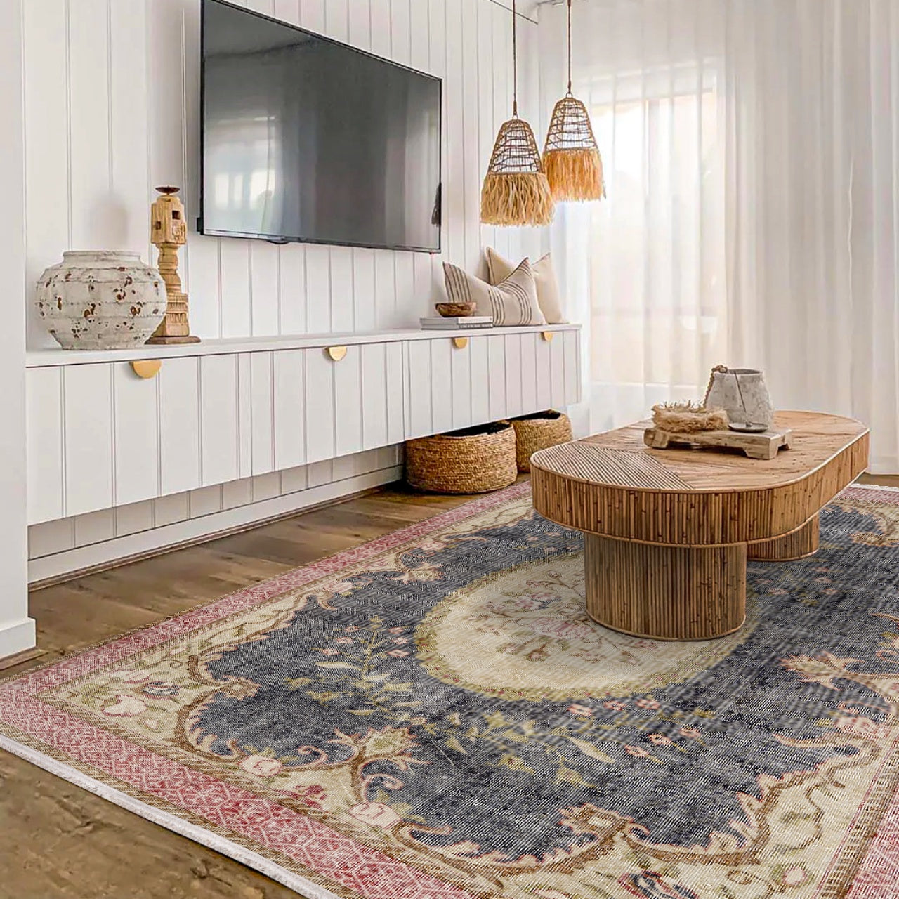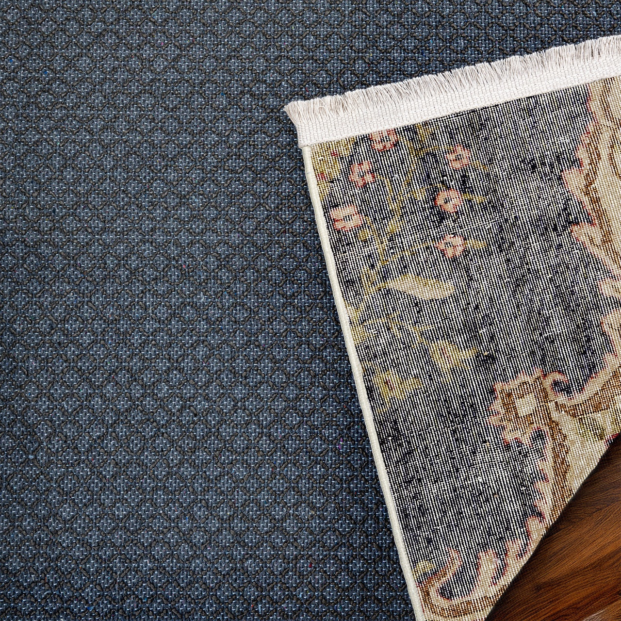 Vintage Lacivert Göbekli Yün ve Pamuk El Dokuma Halı 206x291