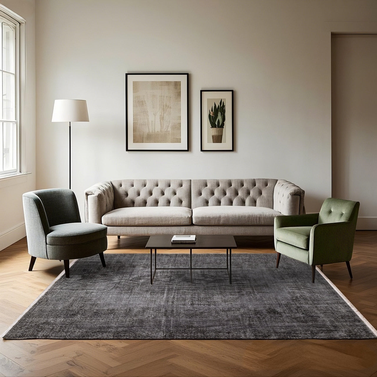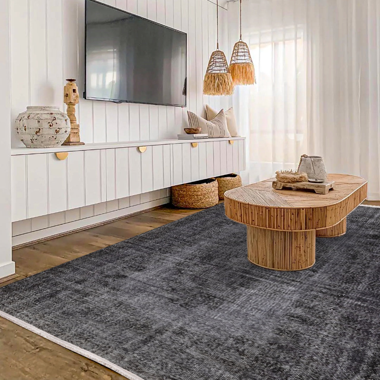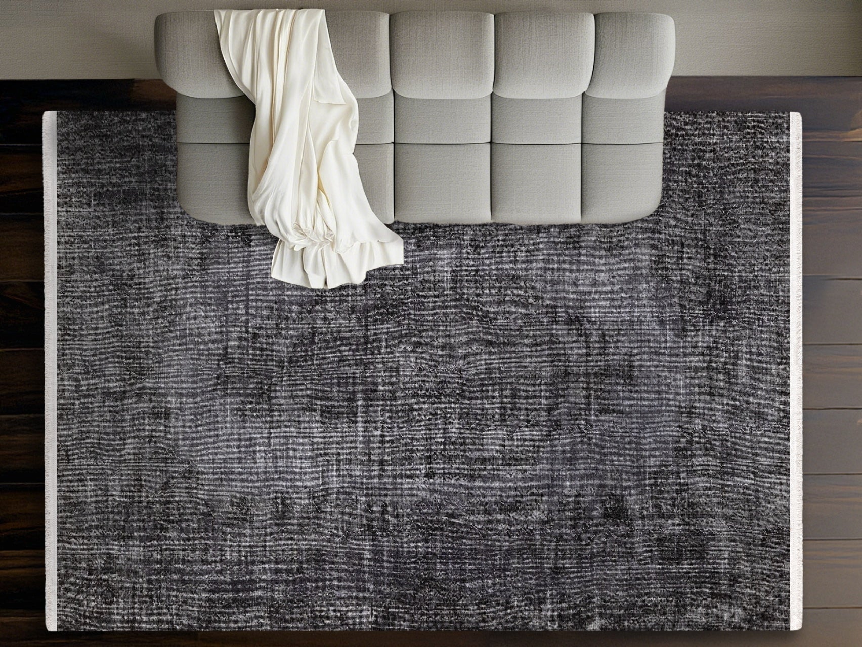 Vintage Siyah Göbekli Yün ve Pamuk El Dokuma Halı 153x265