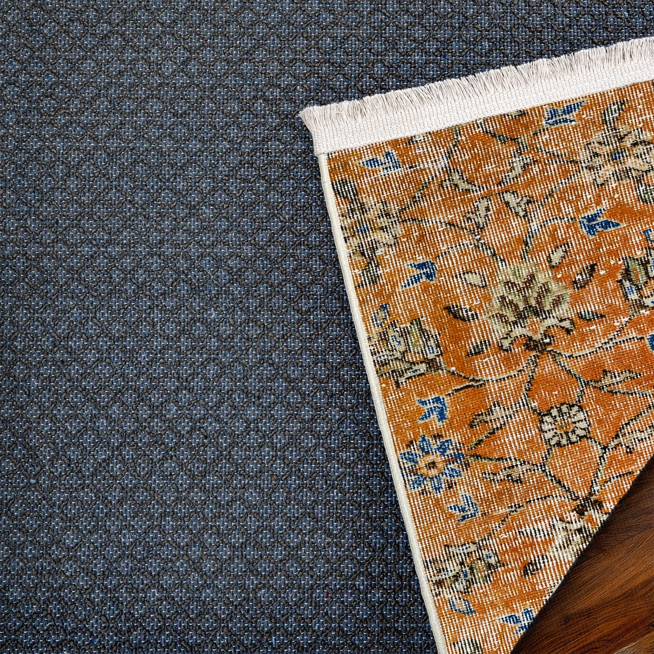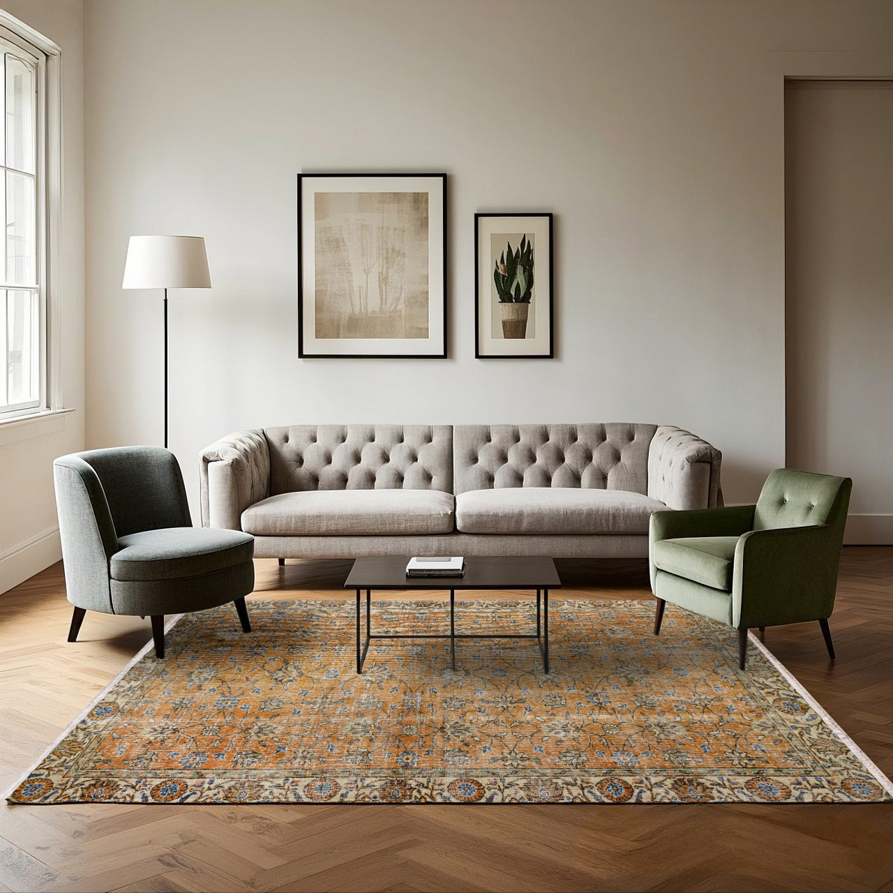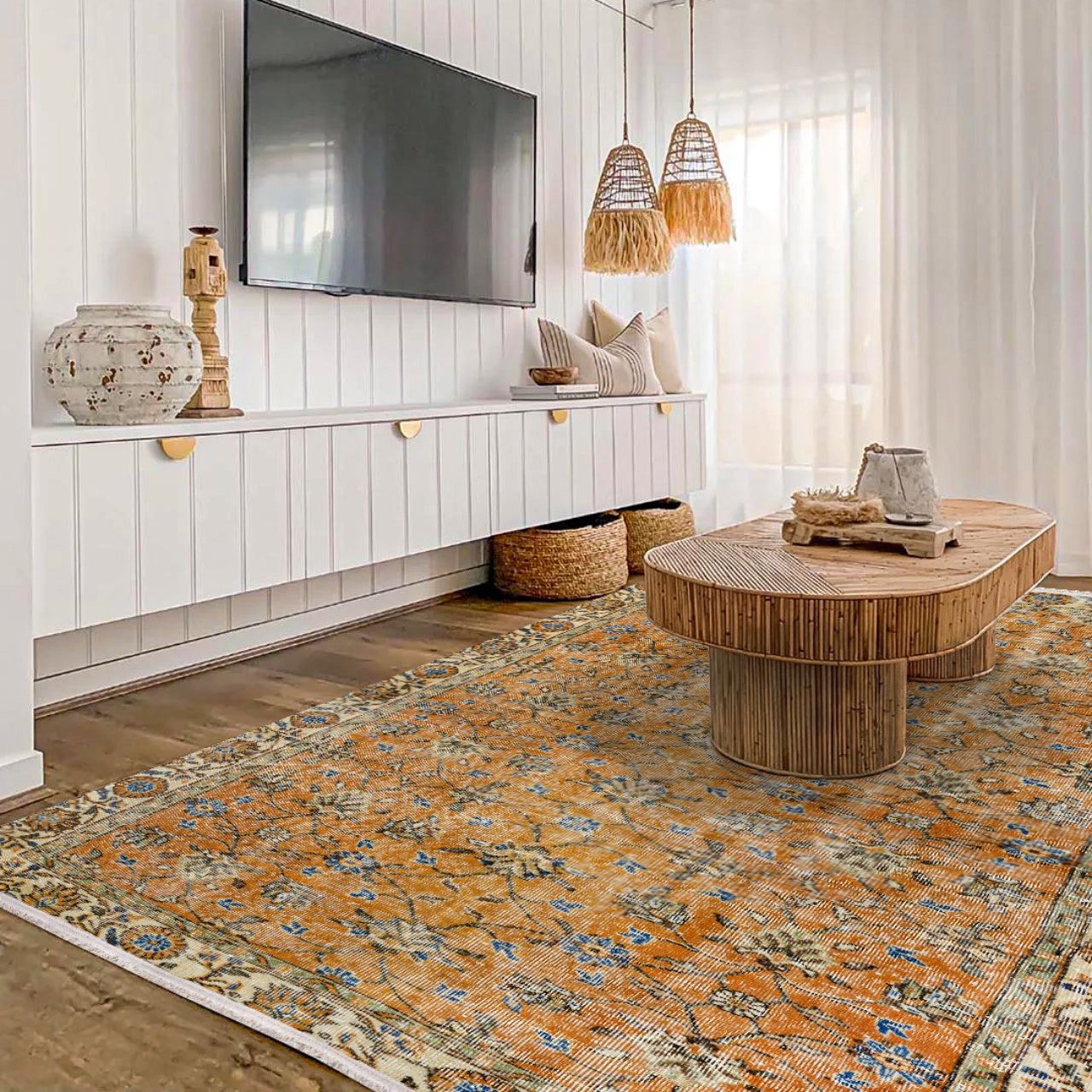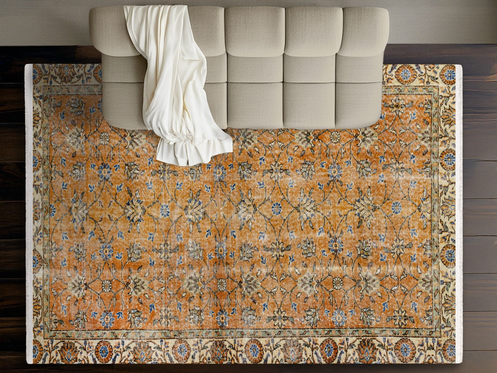 Vintage Turuncu Çerçeveli Yün ve Pamuk El Dokuma Halı 209x322