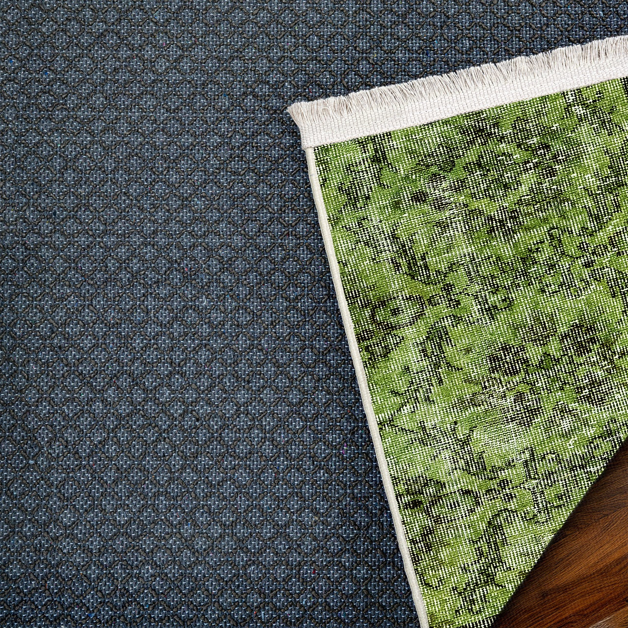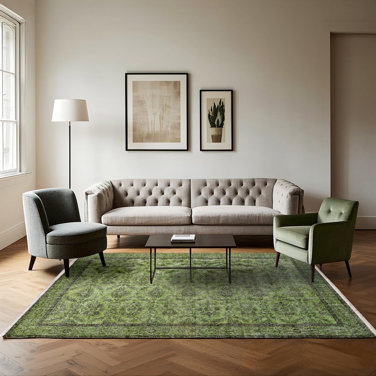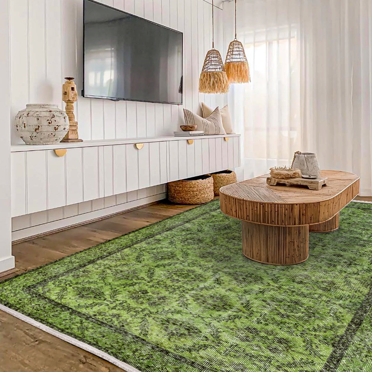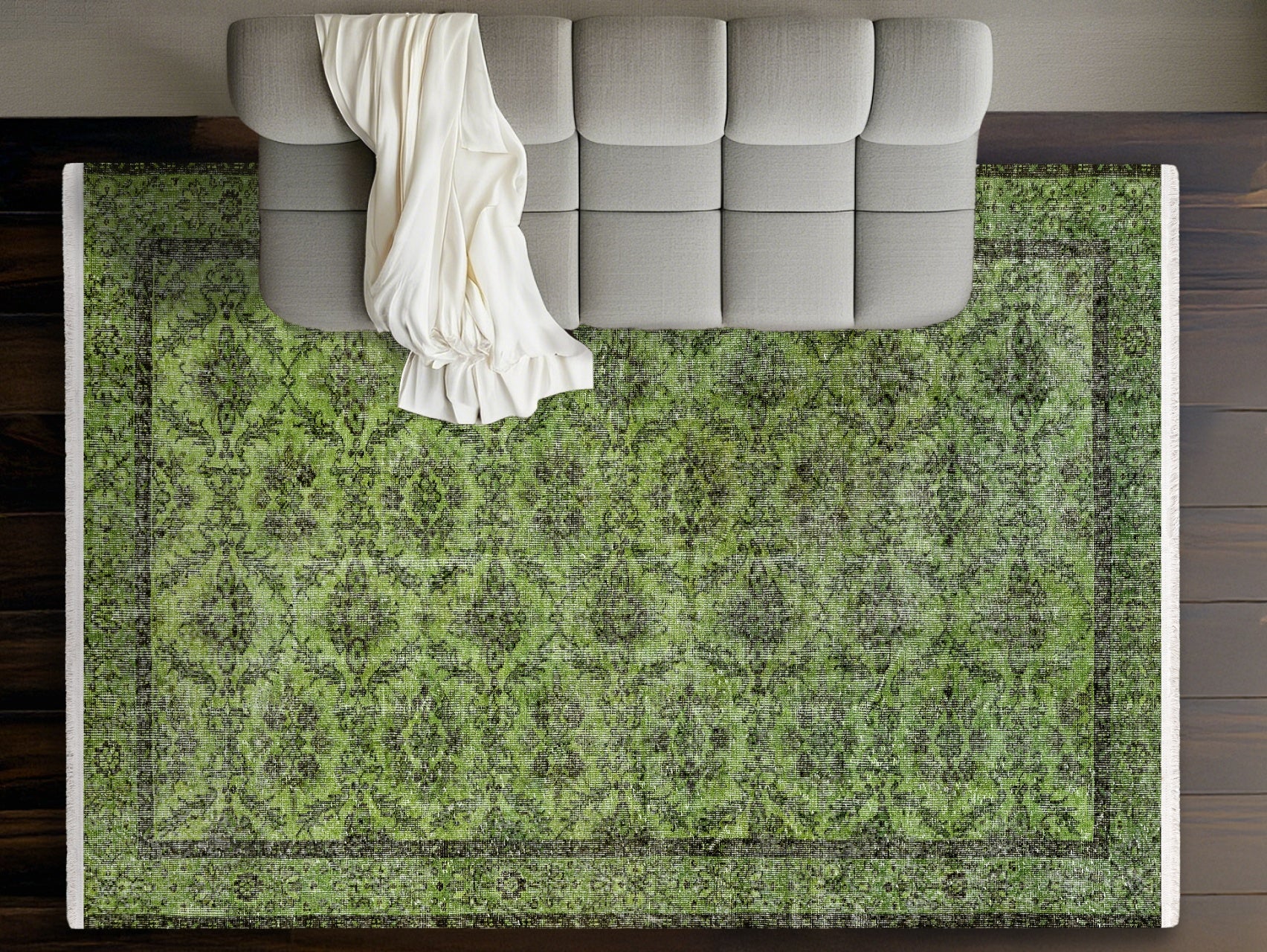 Vintage Yeşil Çerçeveli Yün ve Pamuk El Dokuma Halı 188x279