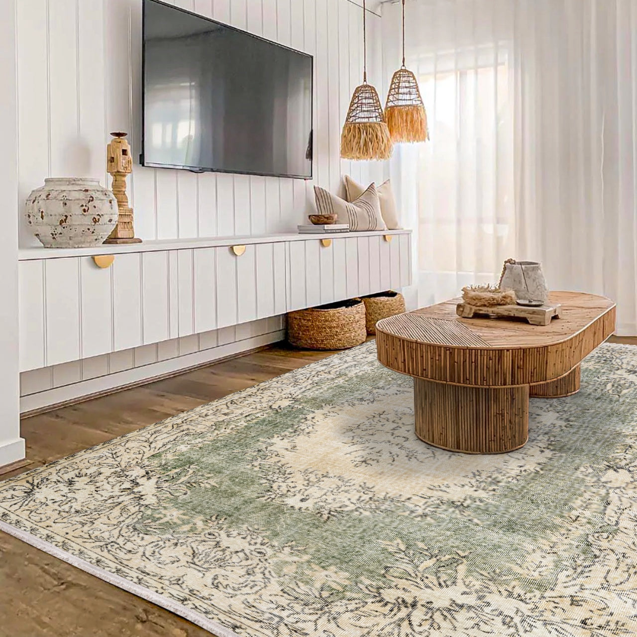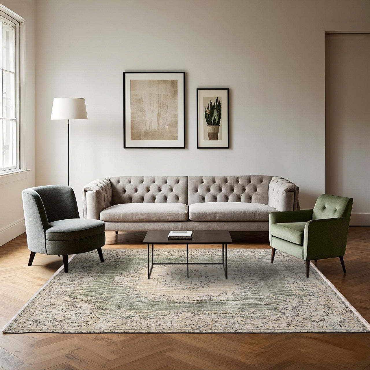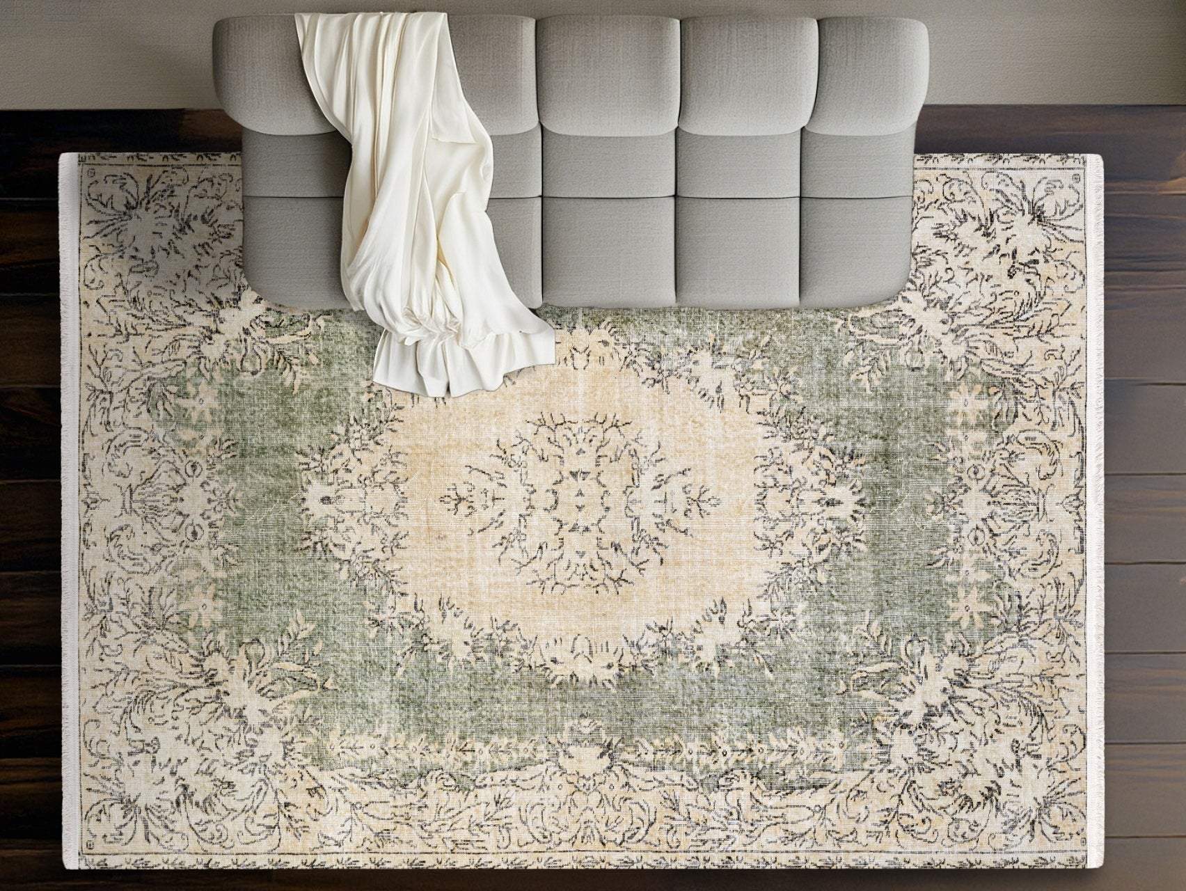 Vintage Yeşil Göbekli Yün ve Pamuk El Dokuma Halı 196x303