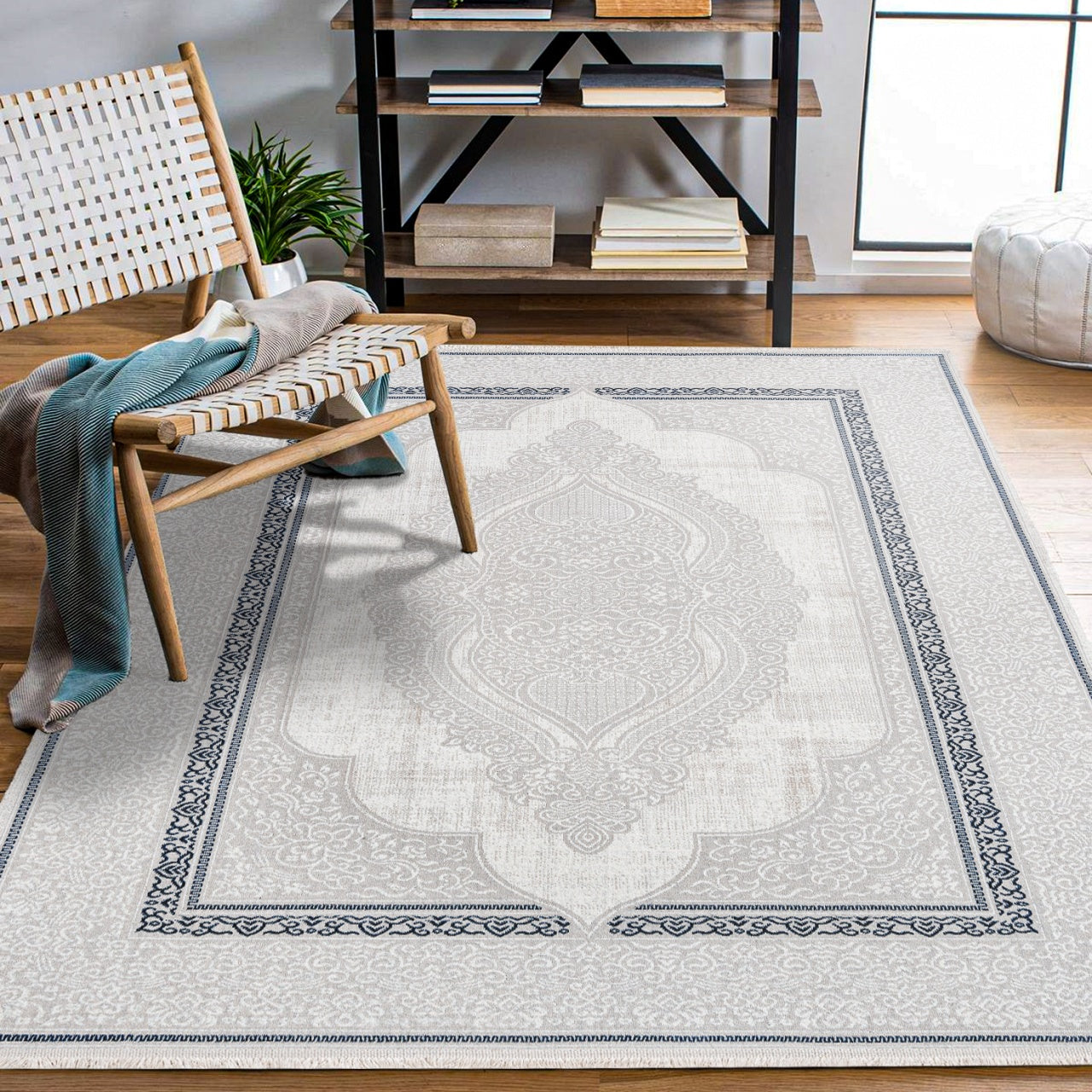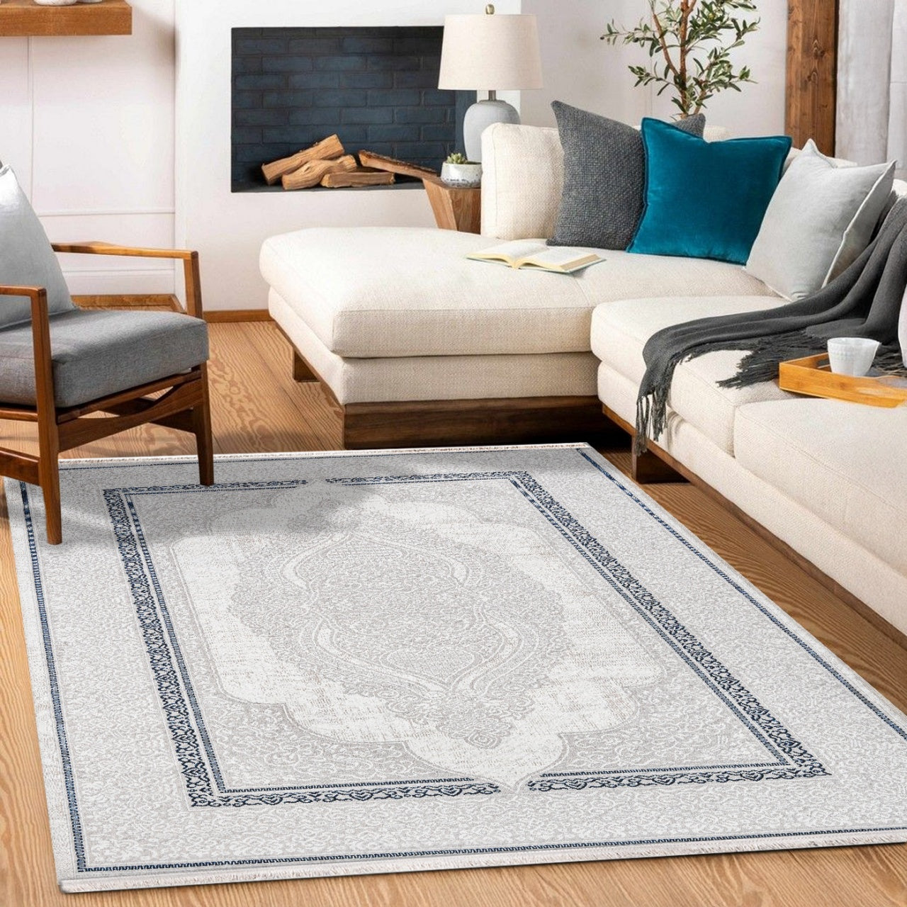 Viviana Gri Mavi Klasik Polyester Makine Halısı