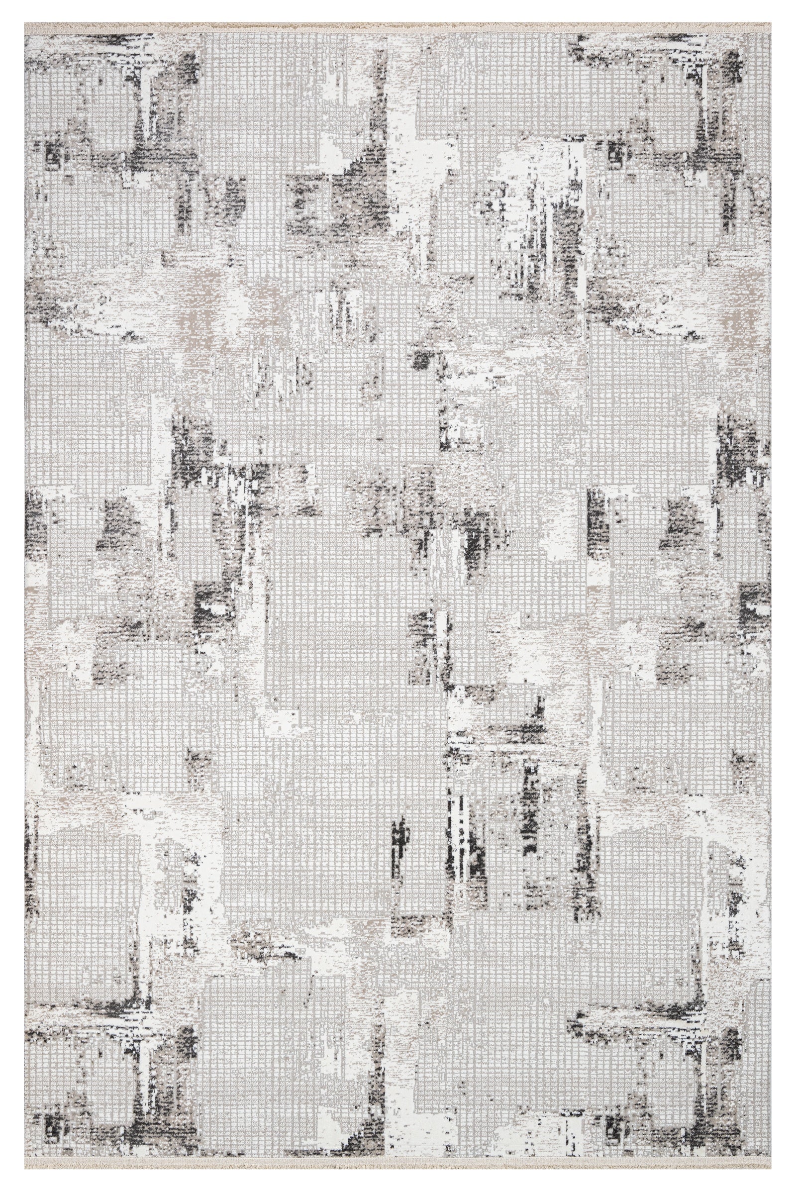 Wynter Gri Beyaz Modern Polyester Makine Halısı