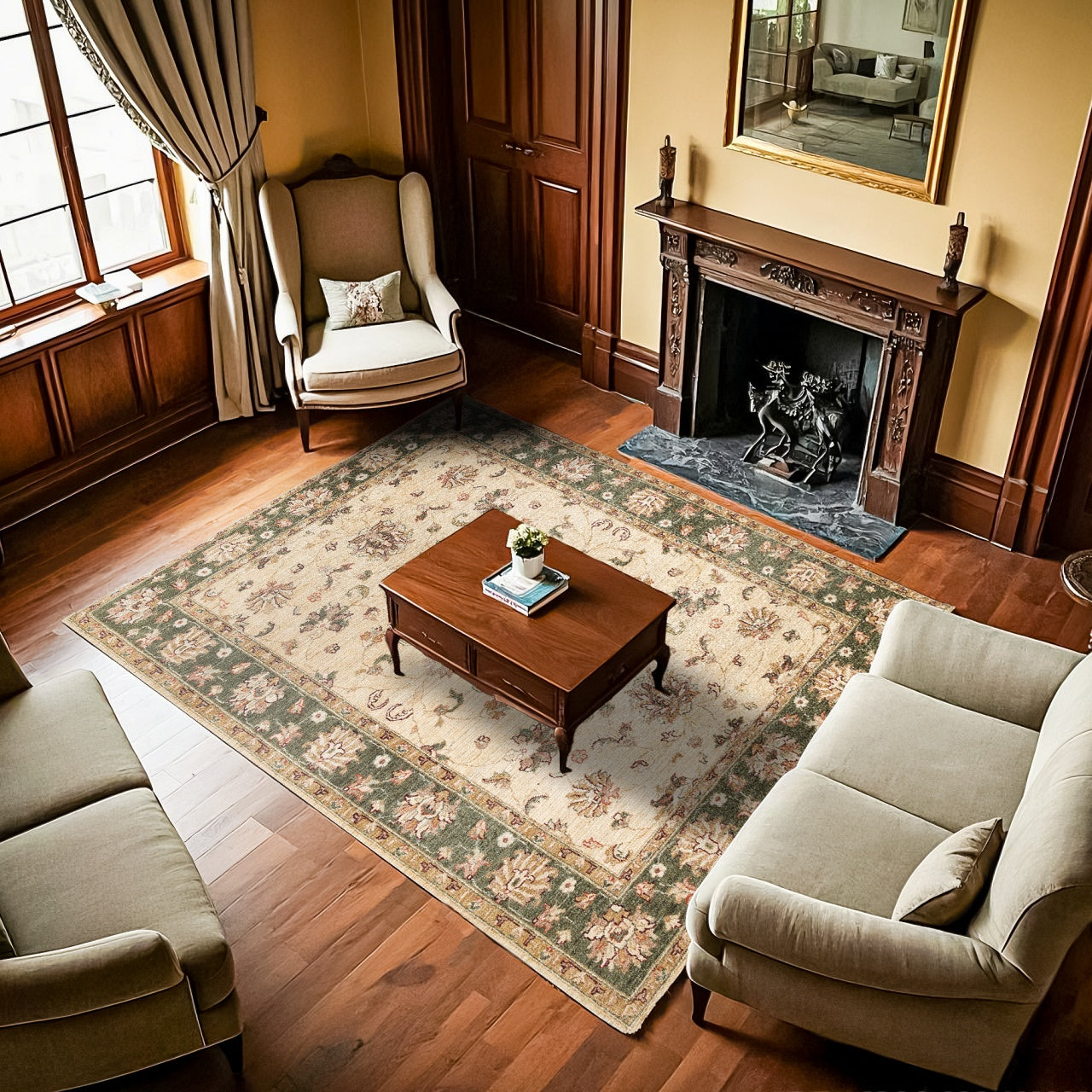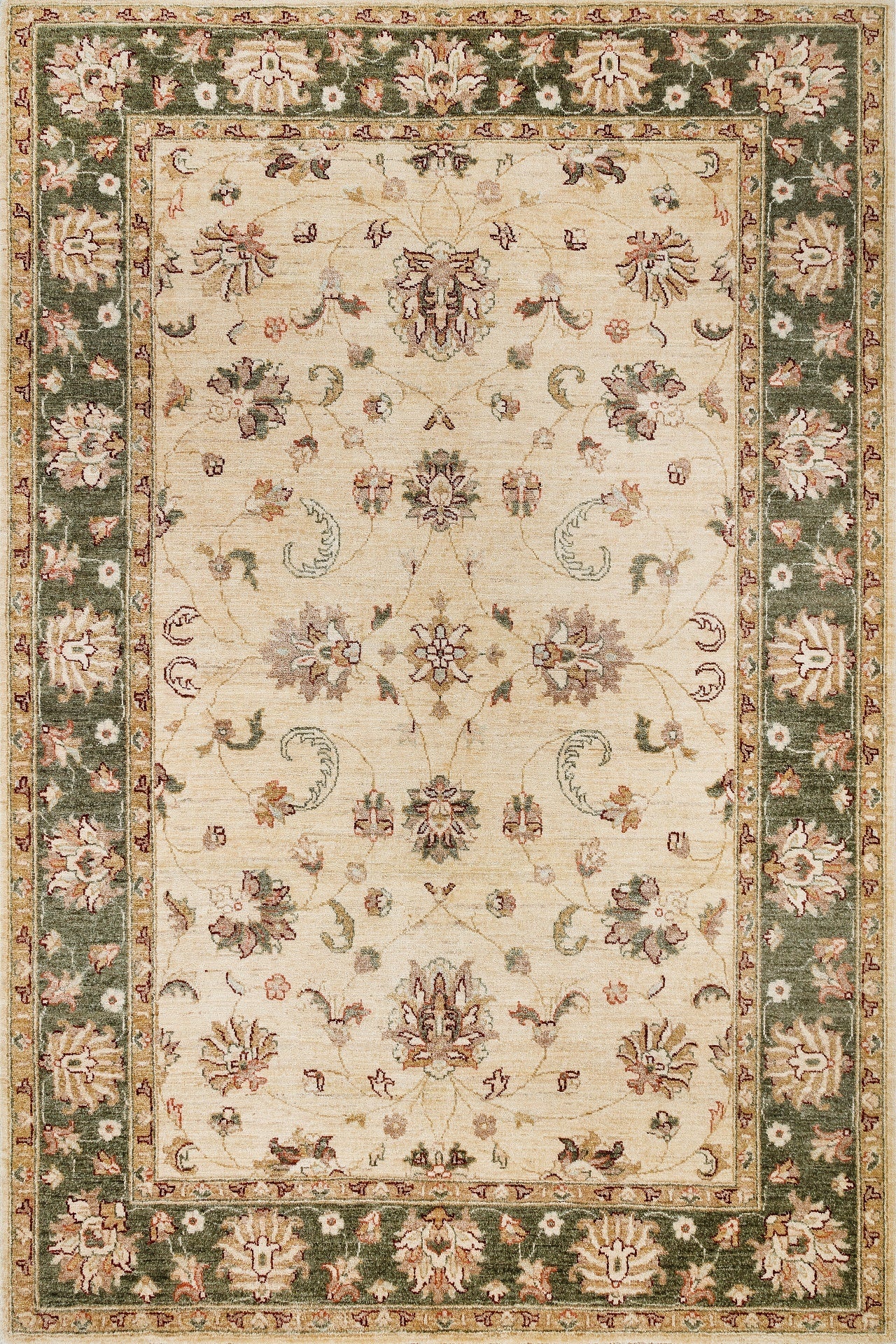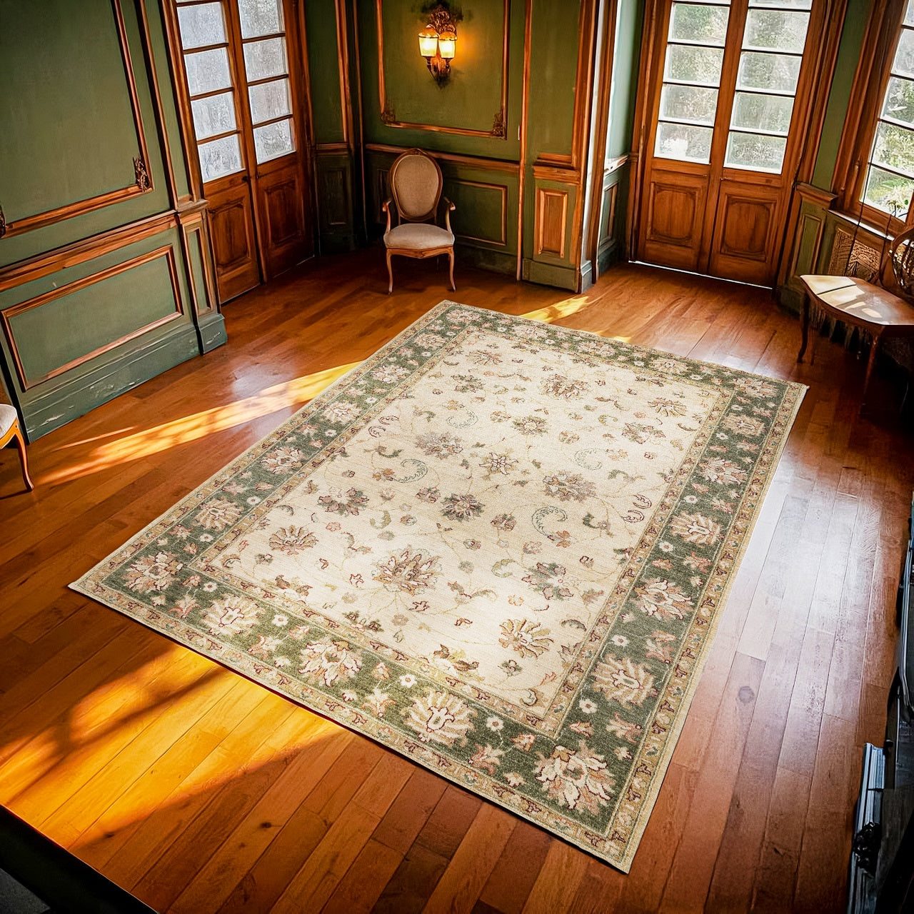 Yeşil Krem Çiçekli Etnik Bohem Halı