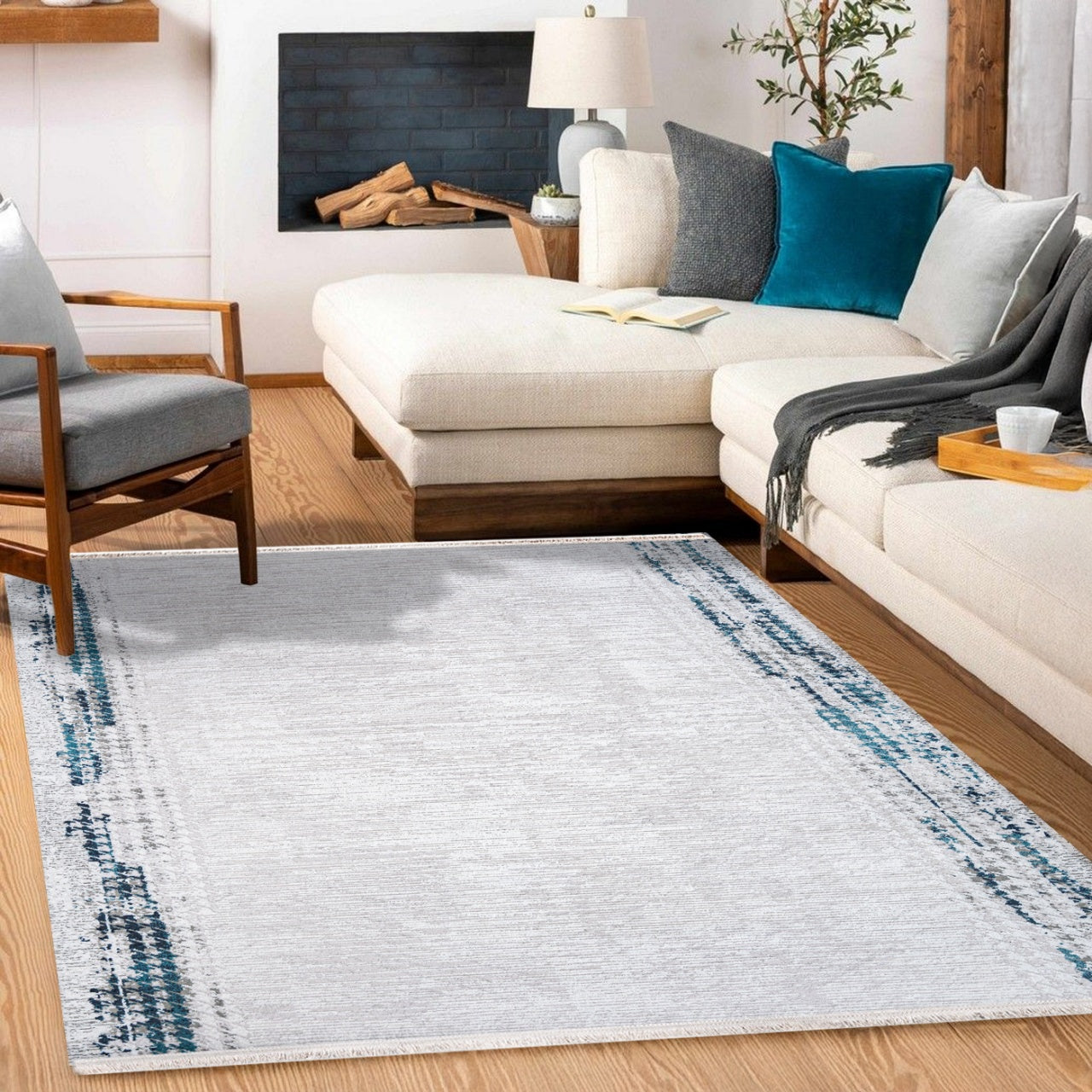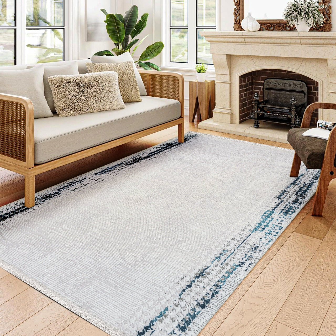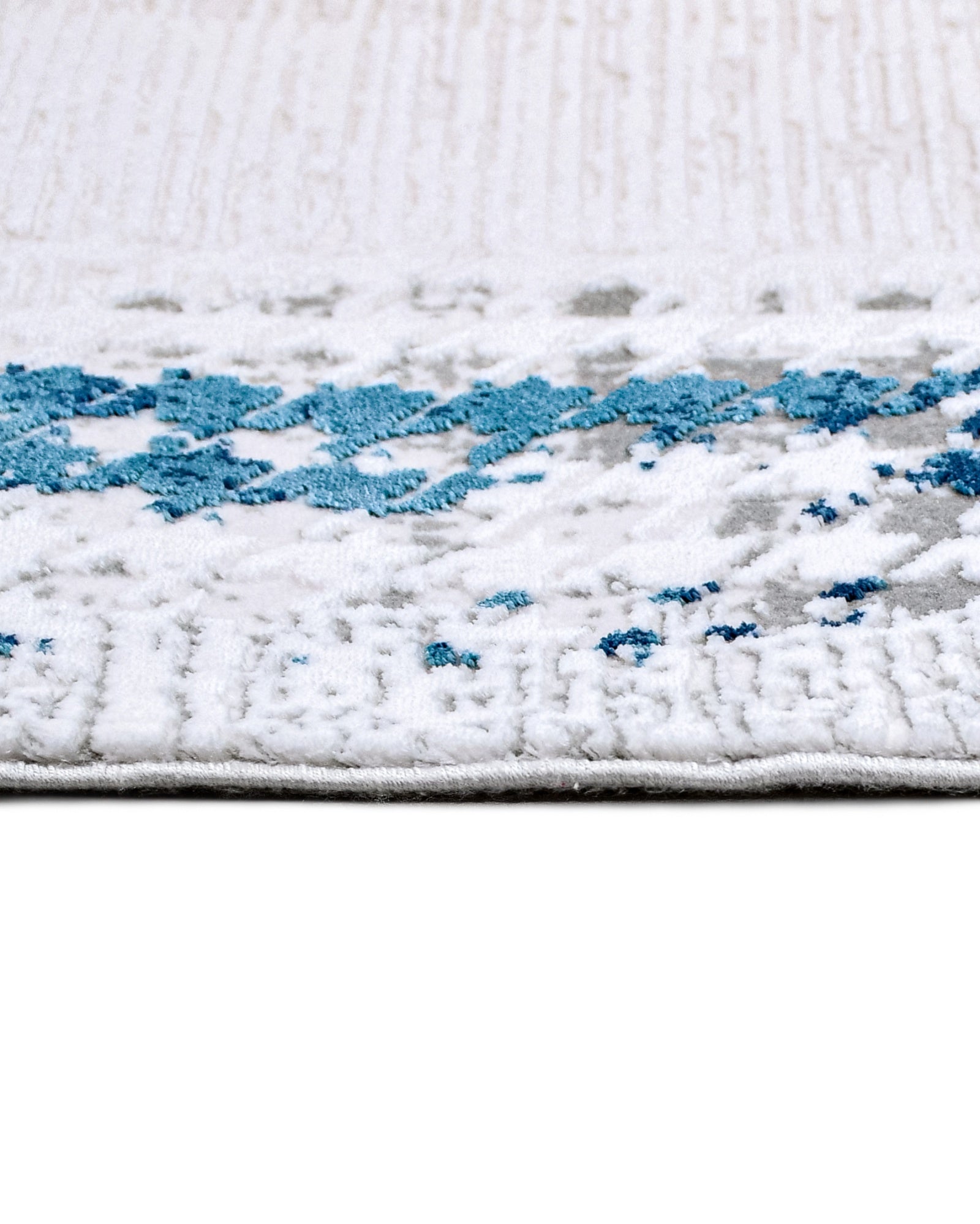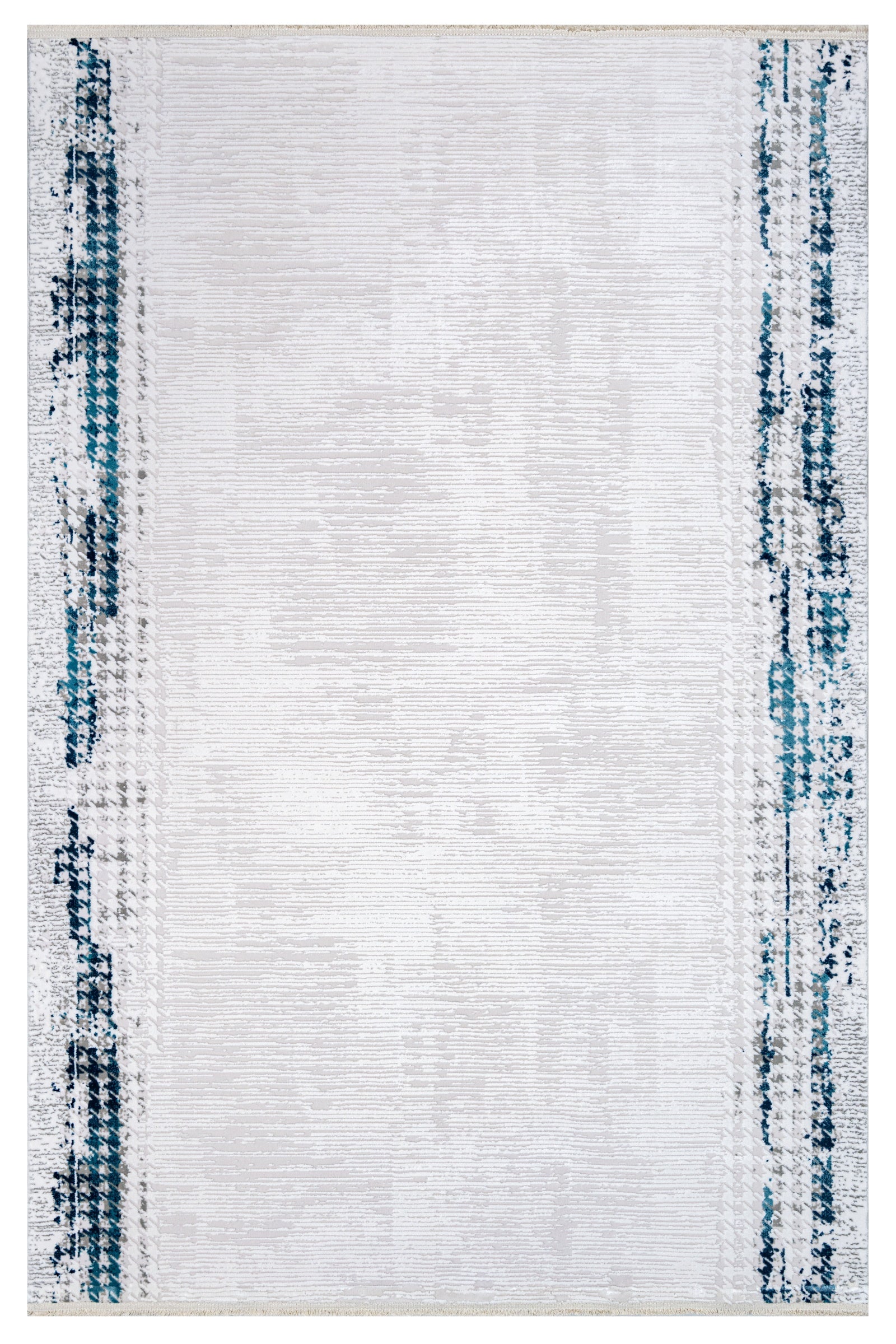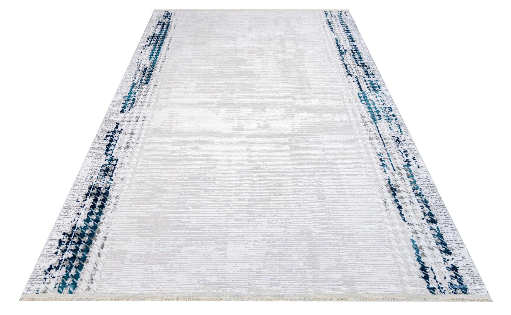 Zuri Beyaz Mavi Çerçeveli Polyester Makine Halısı