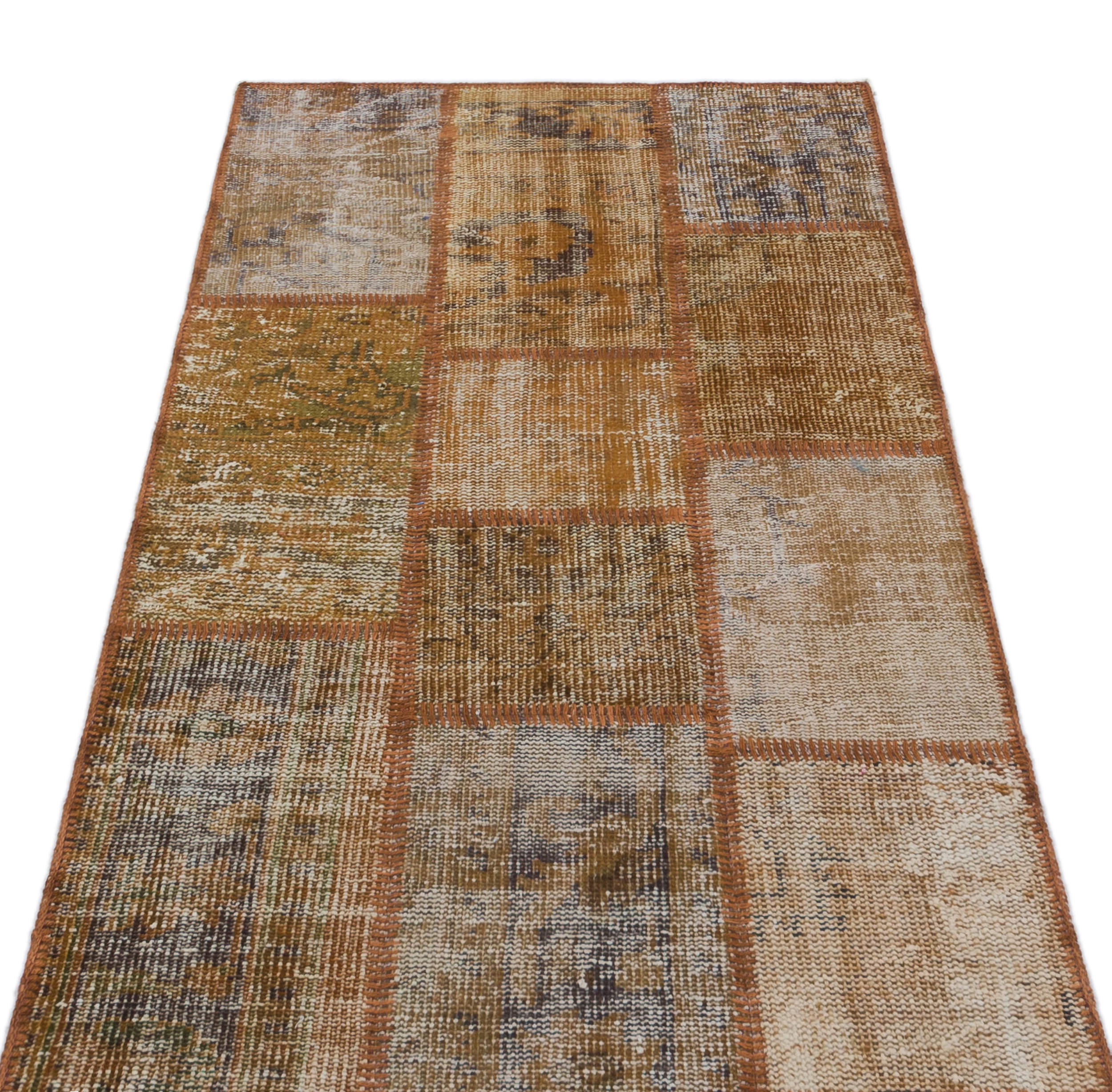 Iskece 31392 Kahverengi Patchwork Yün El Dokuma Halısı 080 x 150