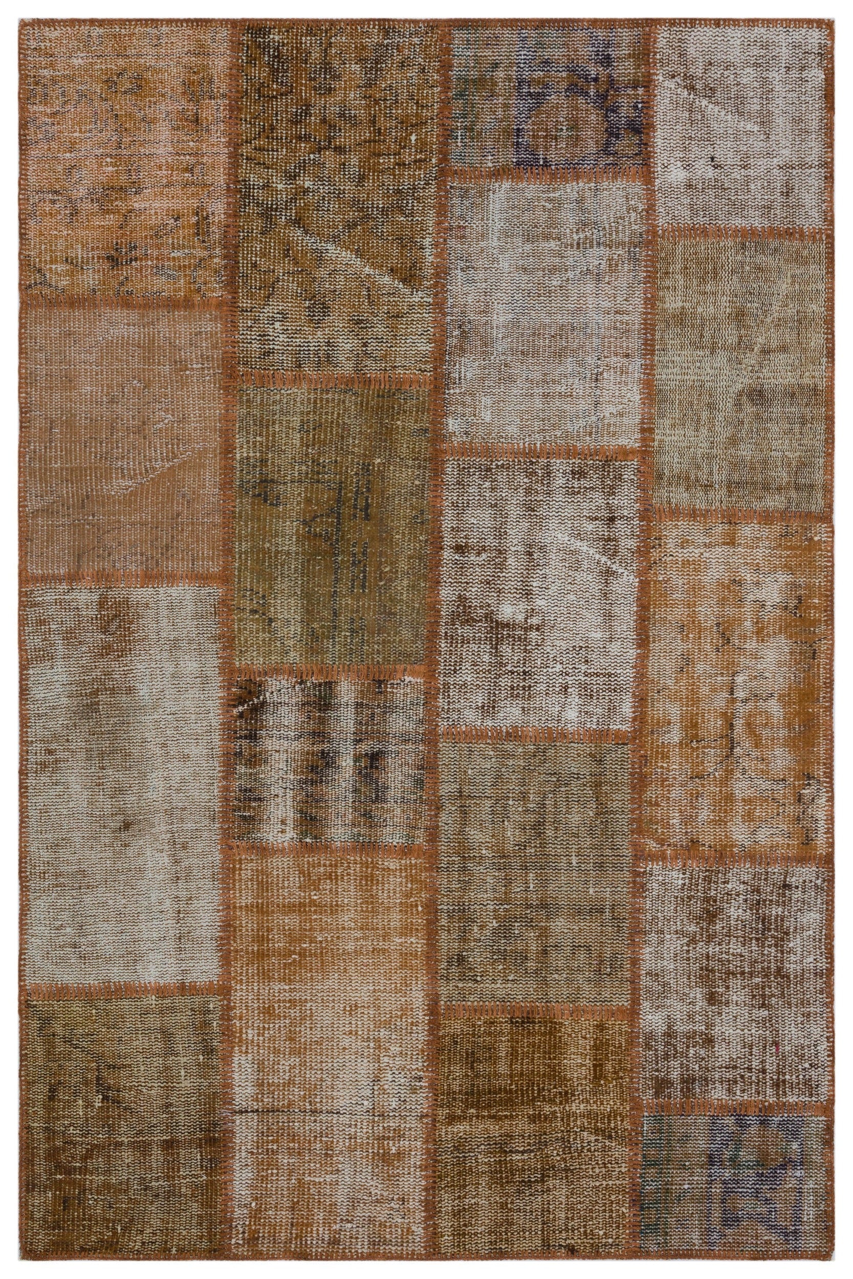 Iskece 33212 Kahverengi Patchwork Yün El Dokuma Halısı 120 x 180