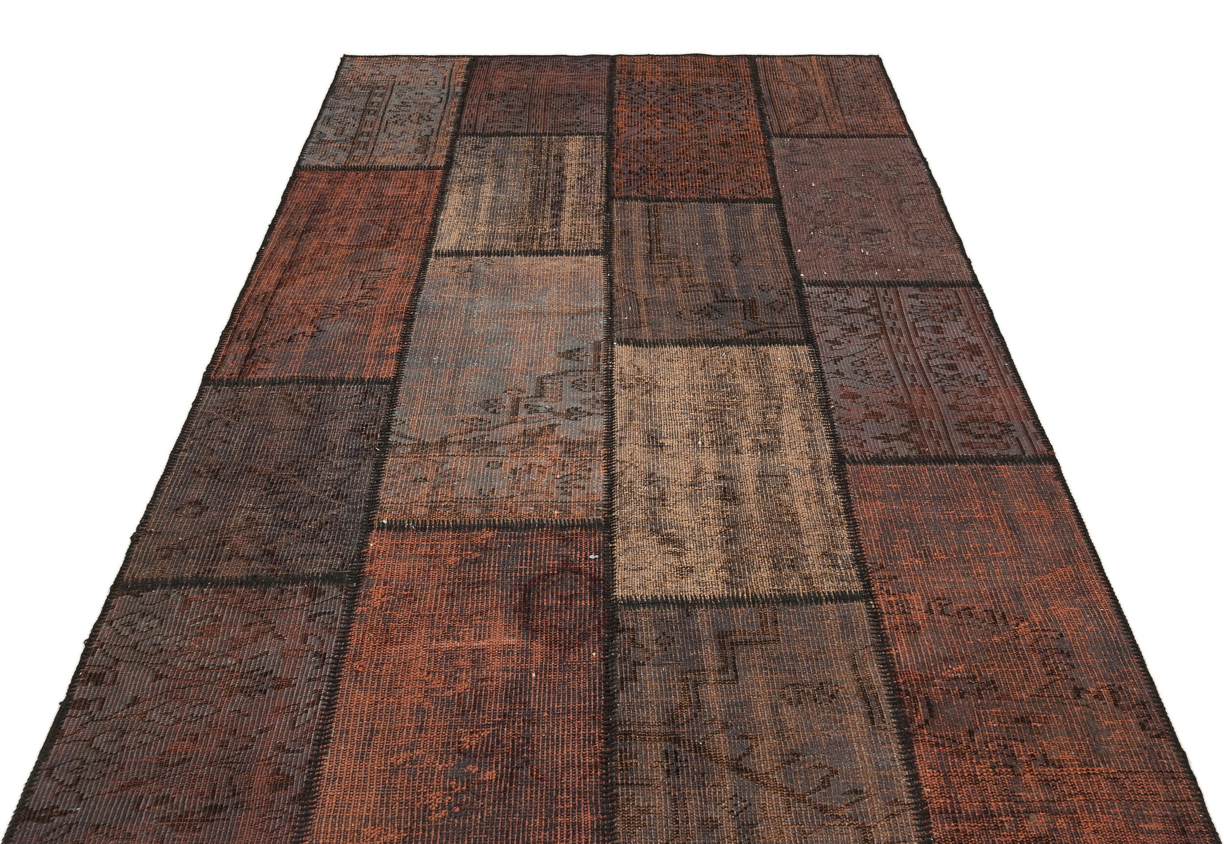 Iskece Kahverengi Eskitme Yün El Dokuma Halısı 161 x 231
