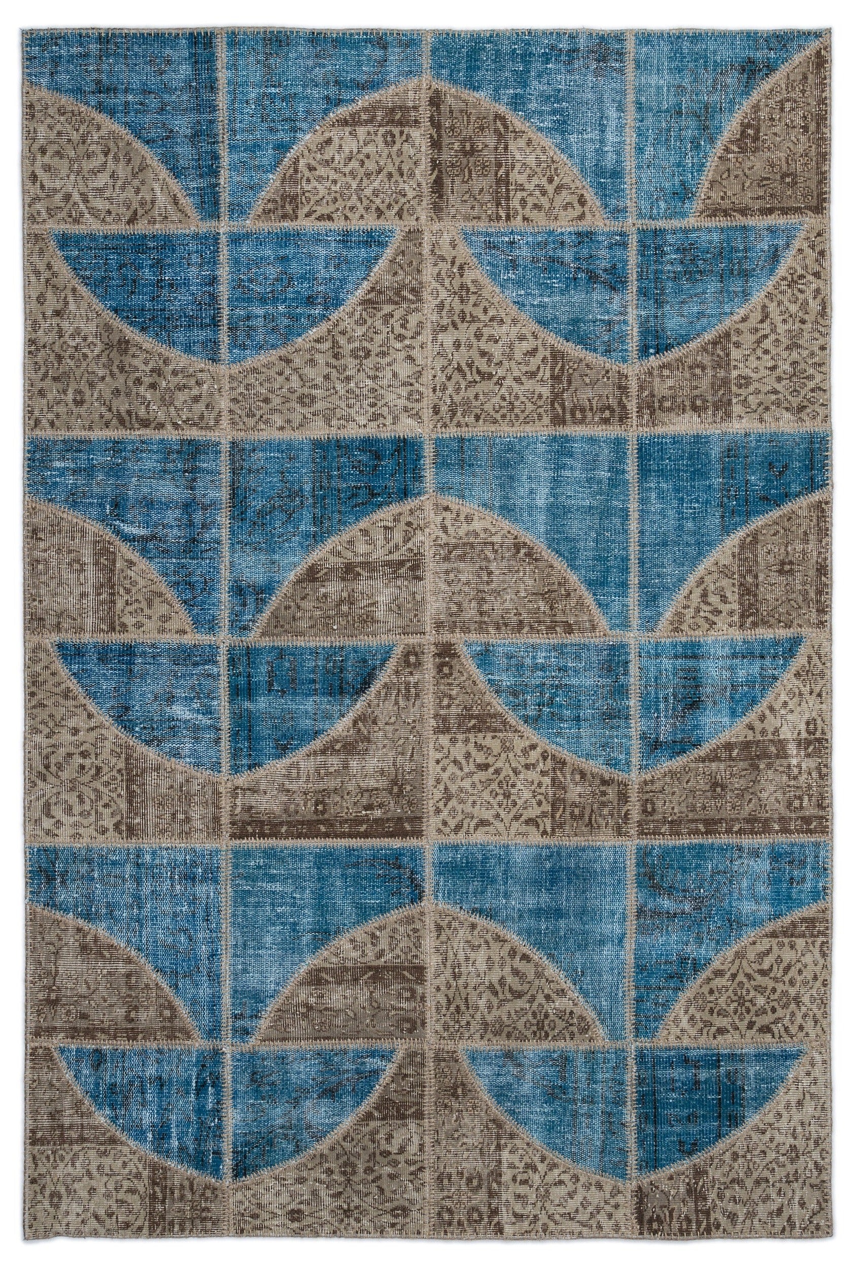 Iskece 2090 Mavi Patchwork Yün El Dokuma Halısı 160 x 230