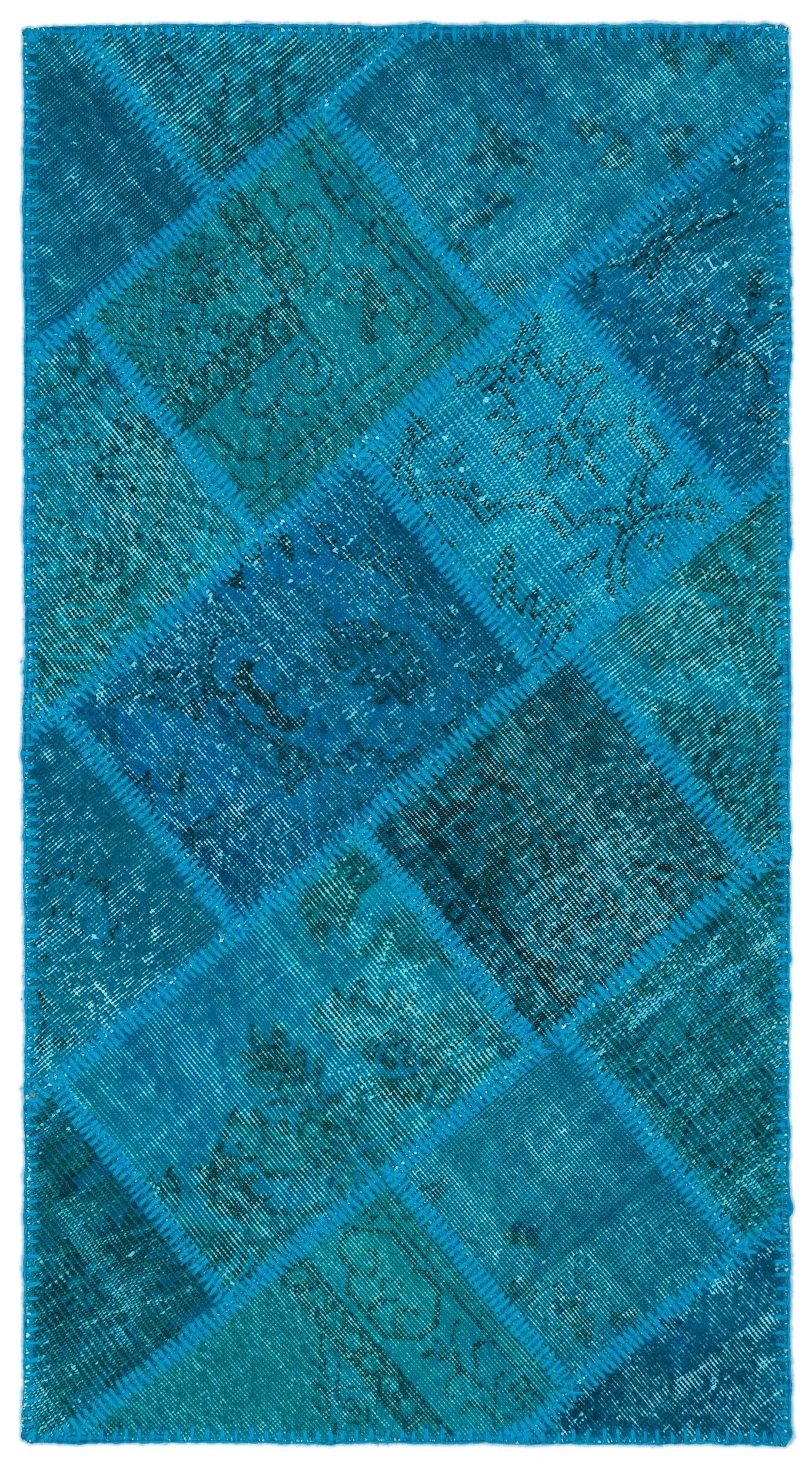 Iskece 25077 Turkuaz Patchwork Yün El Dokuma Halısı 080 x 150