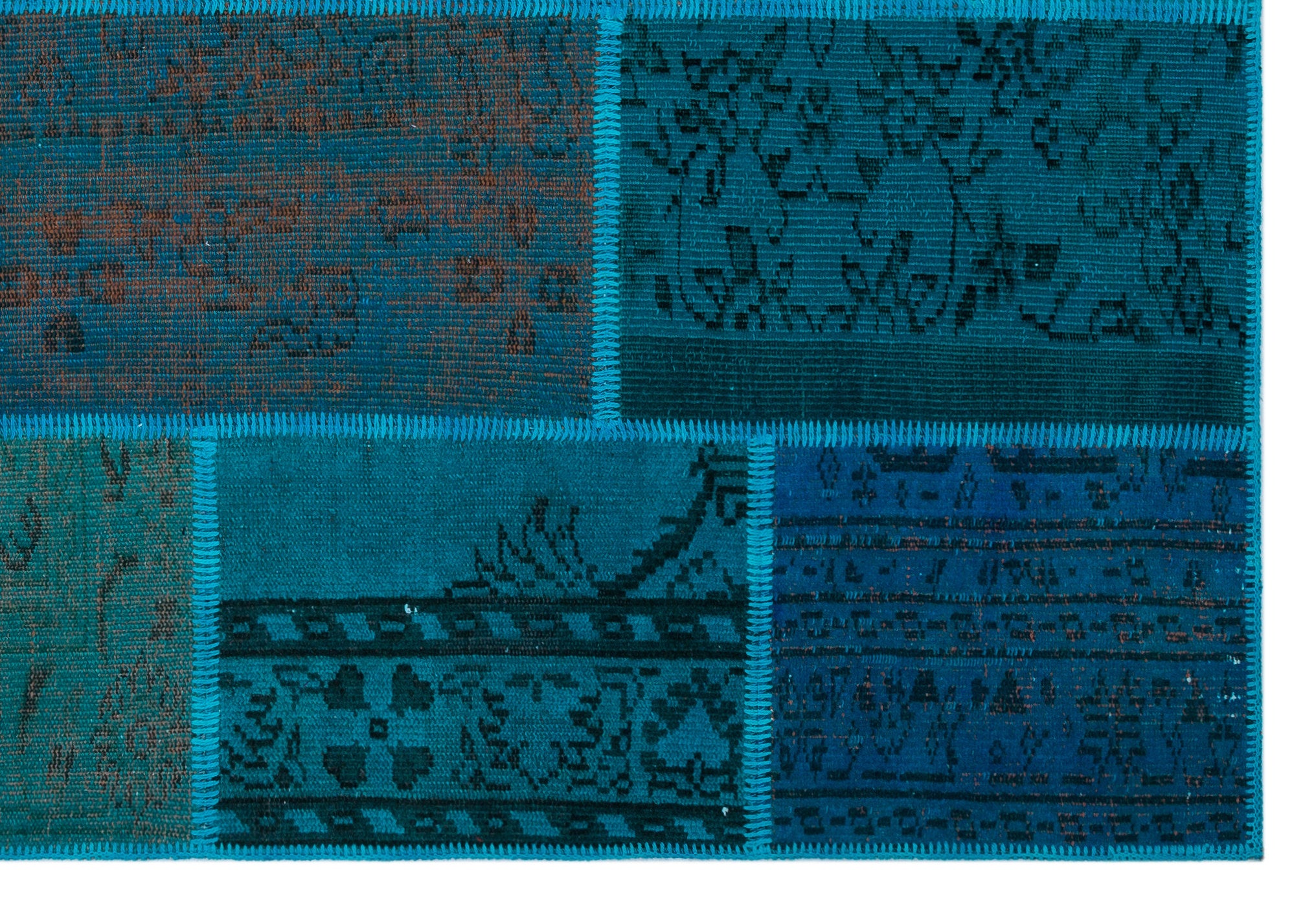 Iskece 26464 Turkuaz Patchwork Yün El Dokuma Halısı 158 x 230
