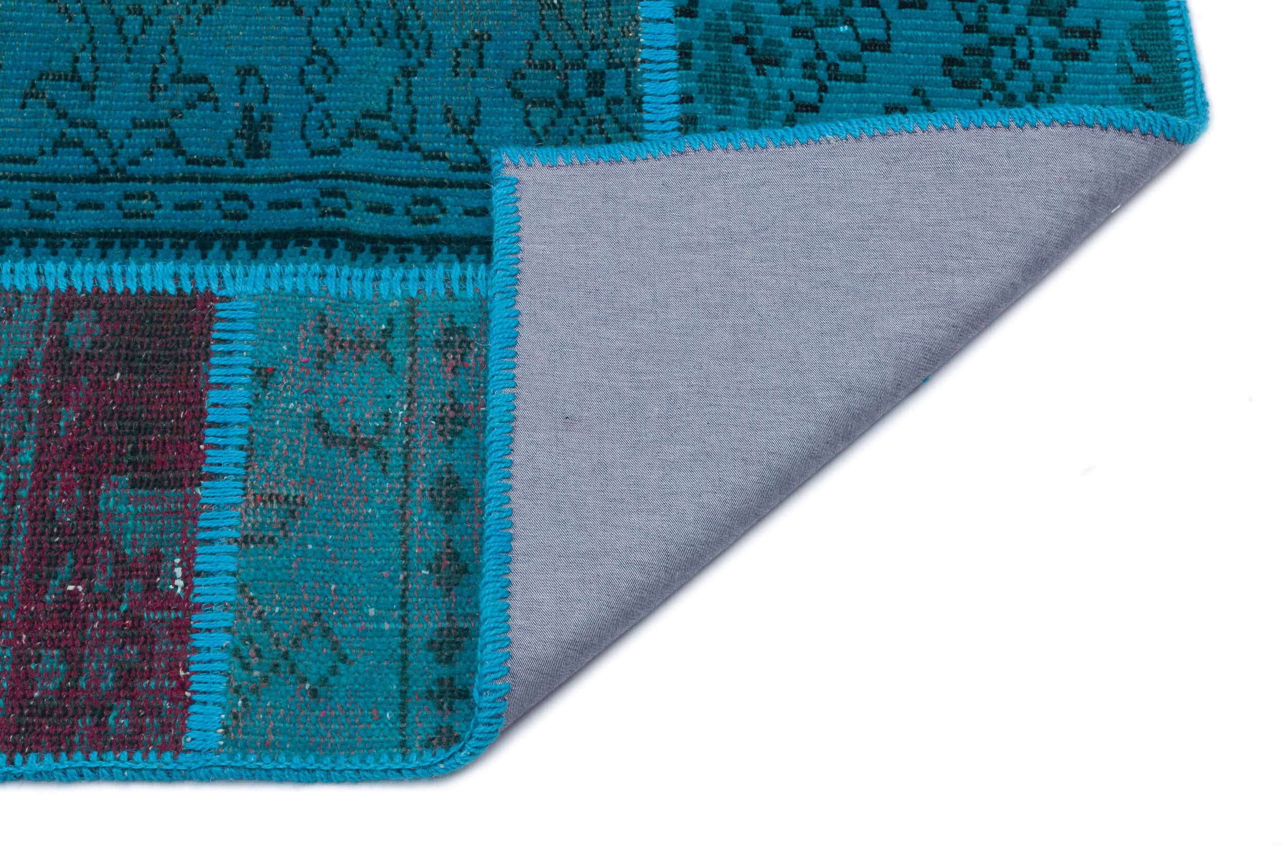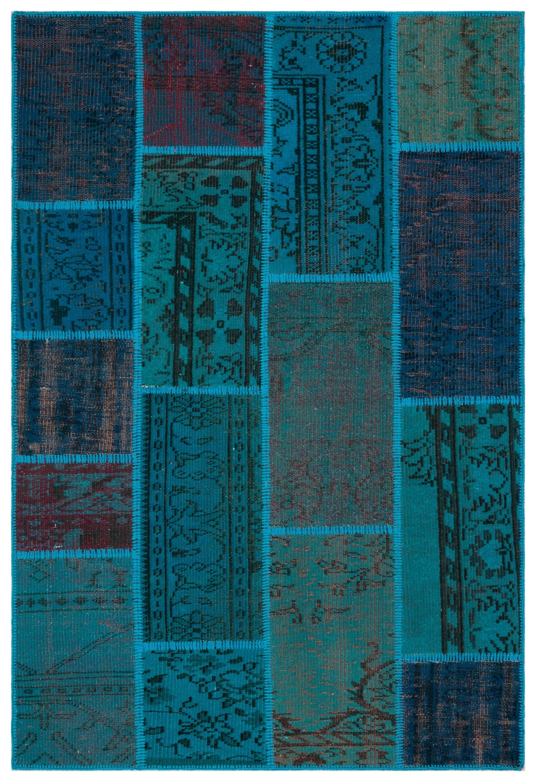 Iskece 33145 Turkuaz Patchwork Yün El Dokuma Halısı 120 x 180