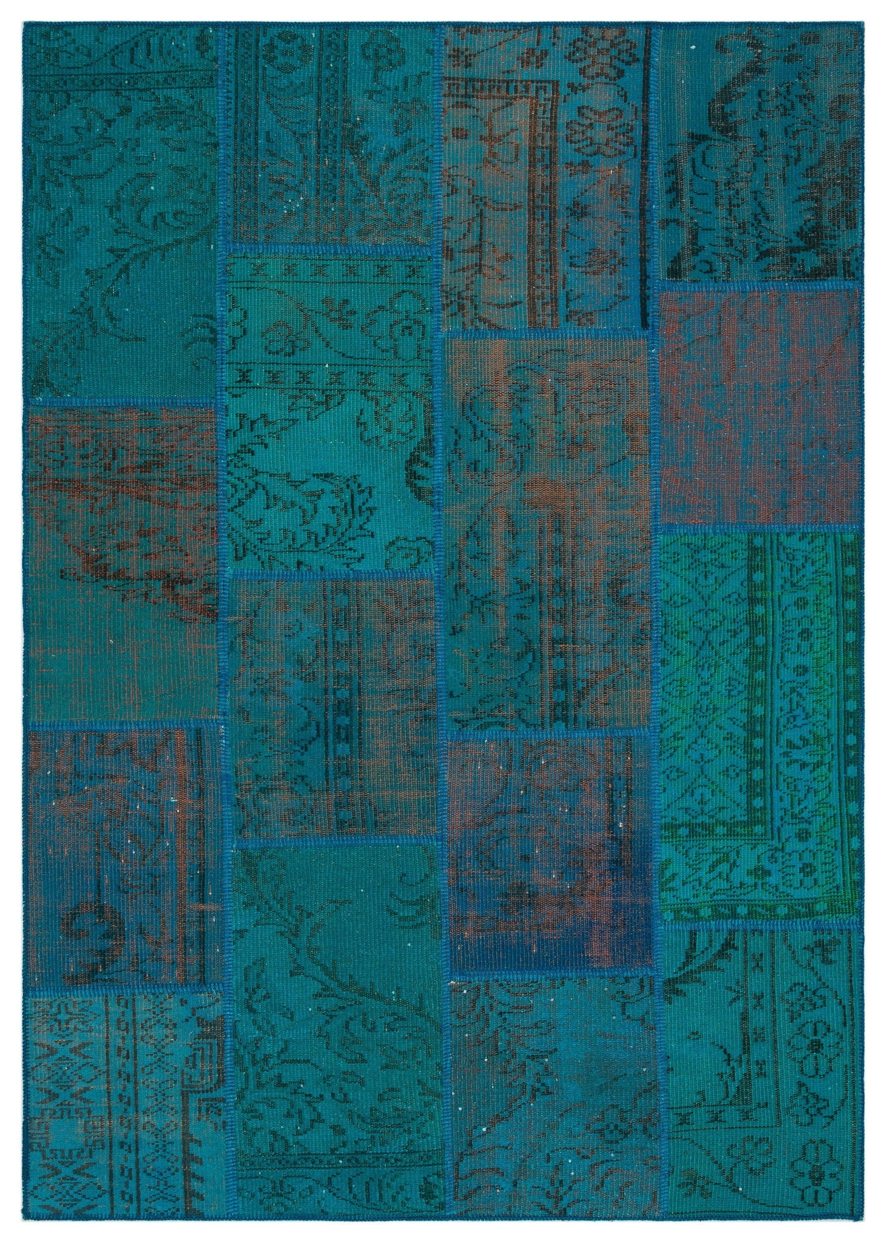 Iskece 33893 Turkuaz Patchwork Yün El Dokuma Halısı 160 x 230