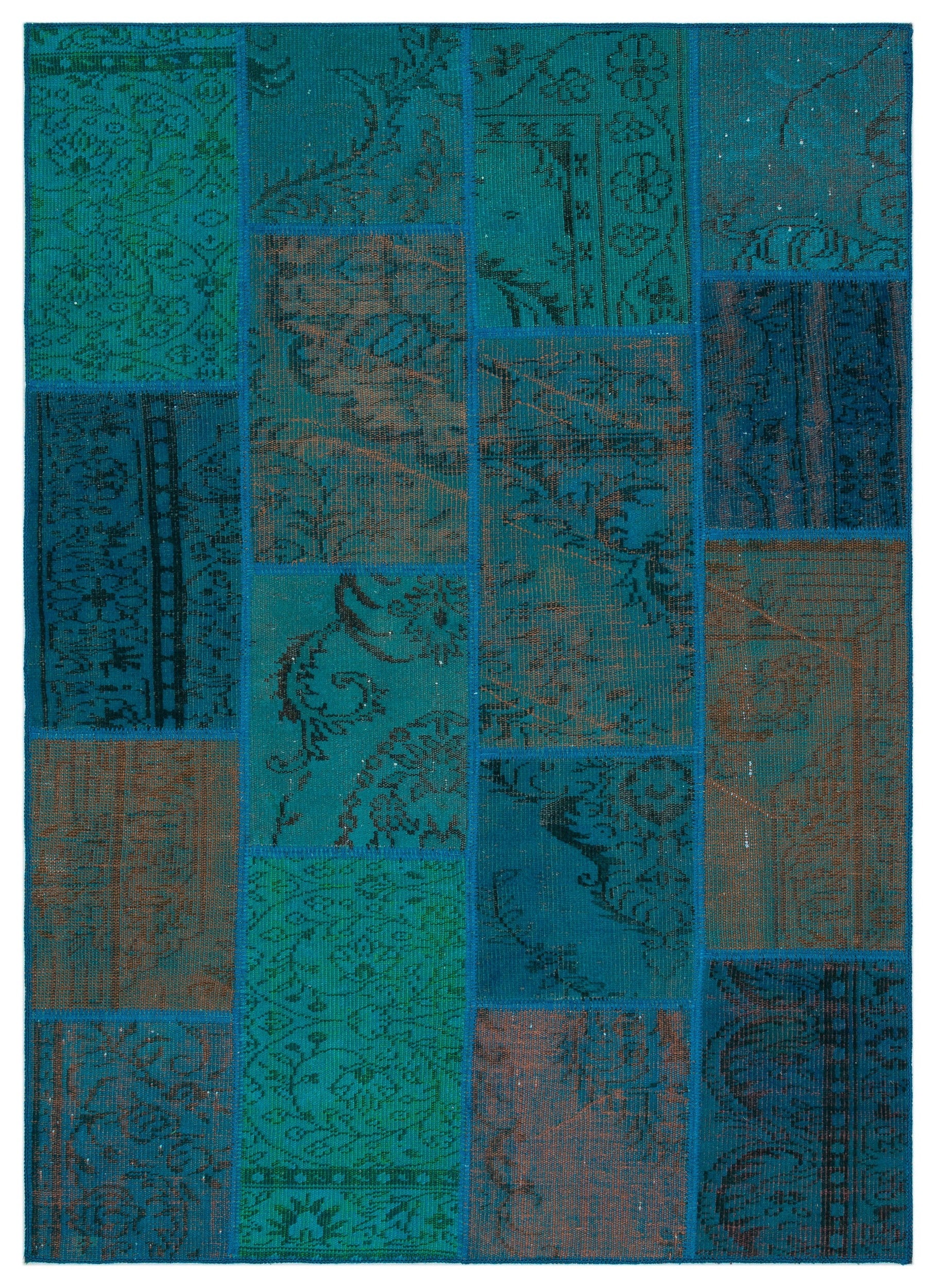 Iskece 33915 Turkuaz Patchwork Yün El Dokuma Halısı 160 x 230