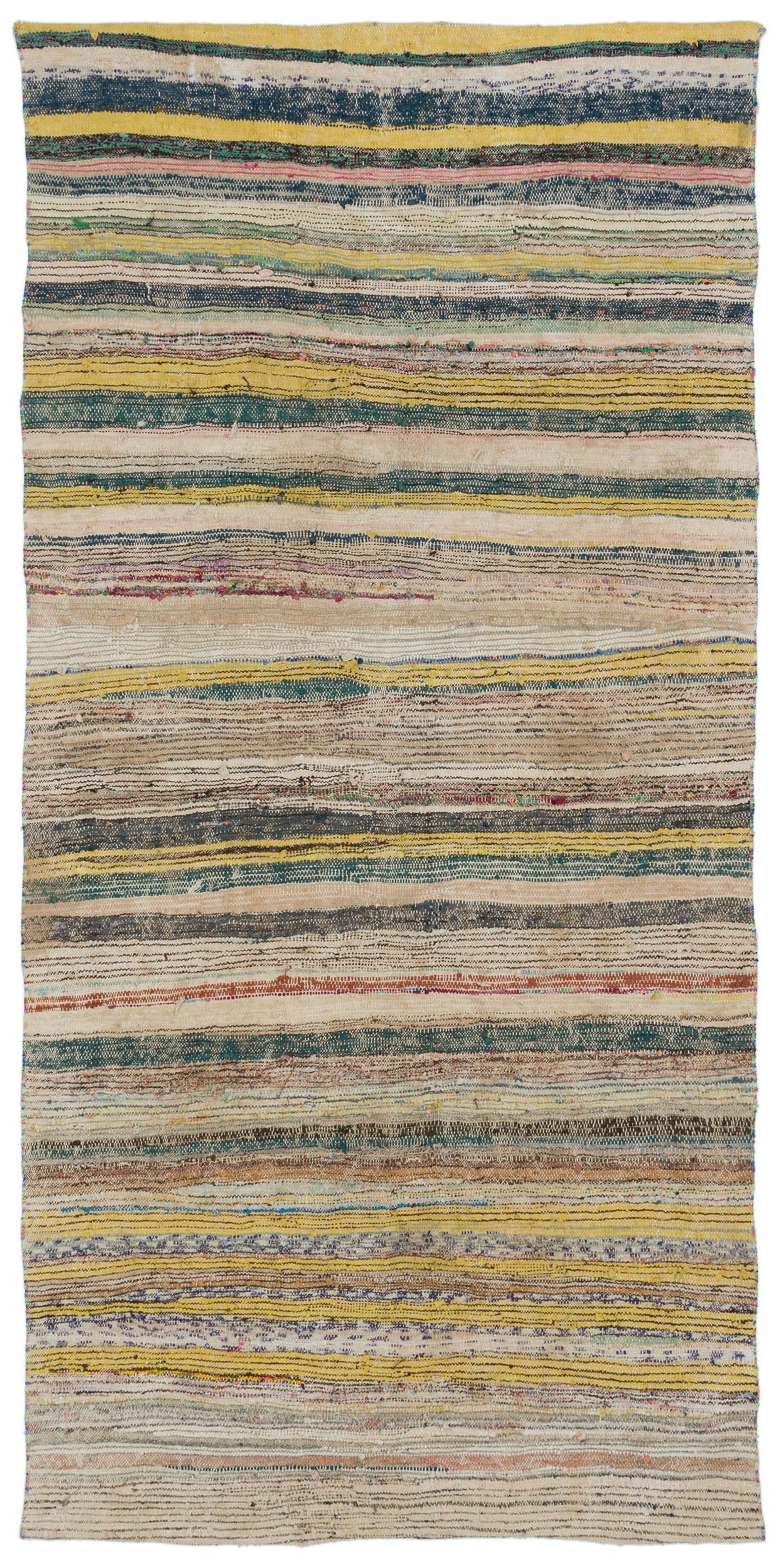 Girit Bej Çizgili Yün El Dokuma Halısı 133 x 271