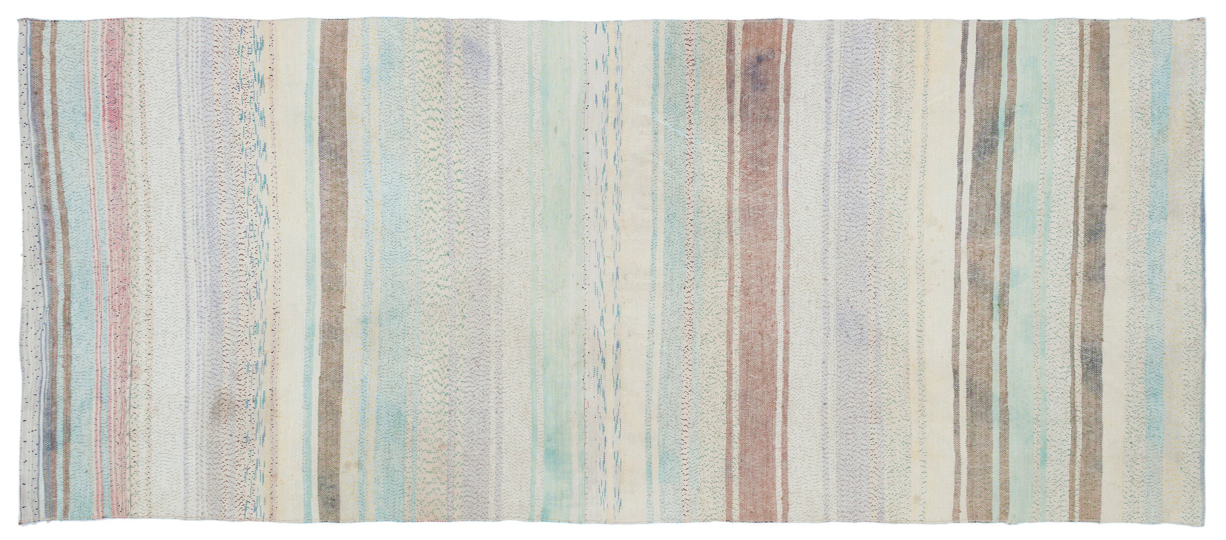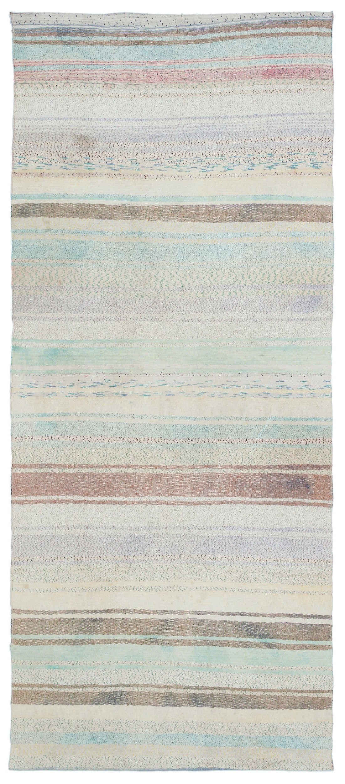 Girit 32202 Bej Çizgili Yün El Dokuma Halısı 125 x 300