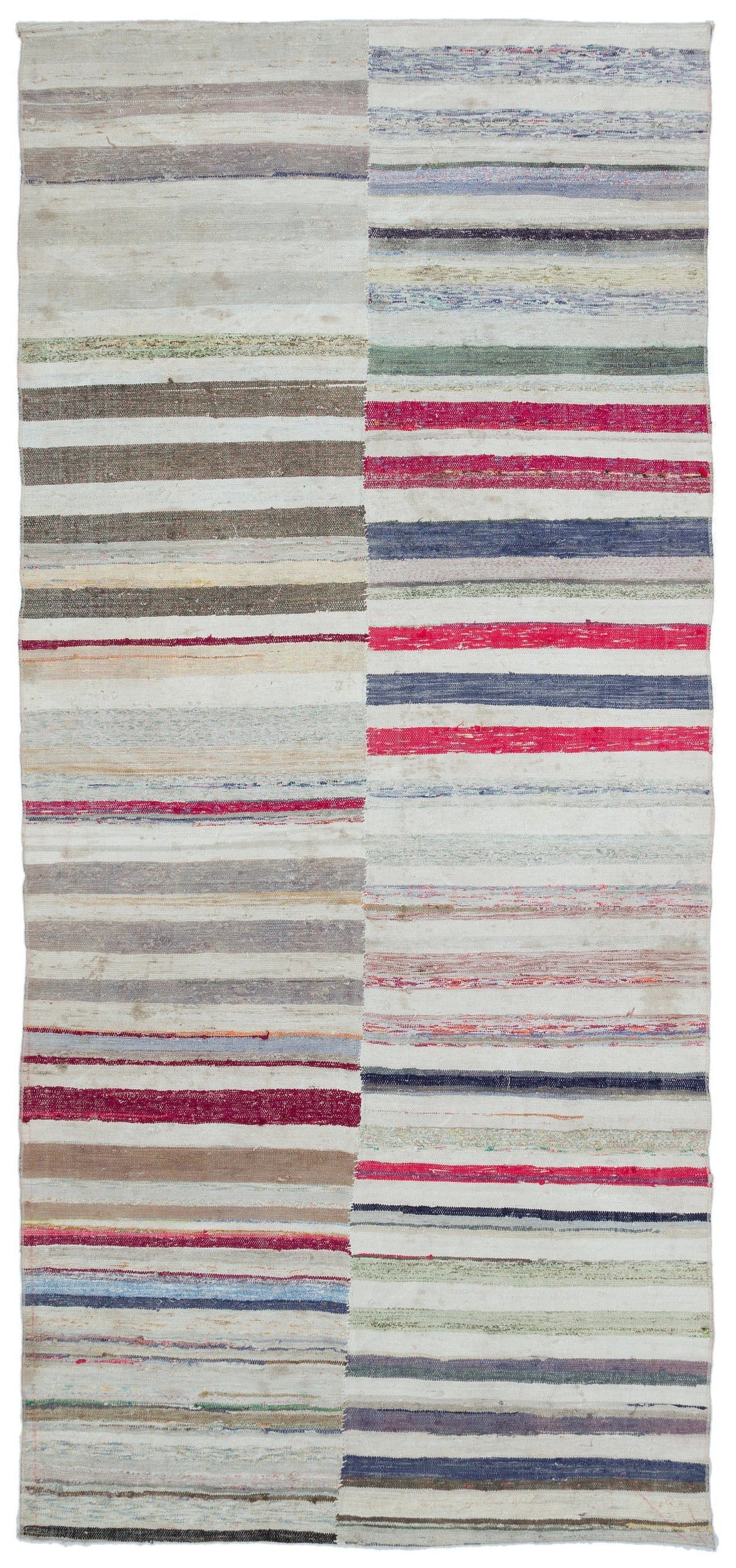 Girit Bej Çizgili Yün El Dokuma Halısı 131 x 286