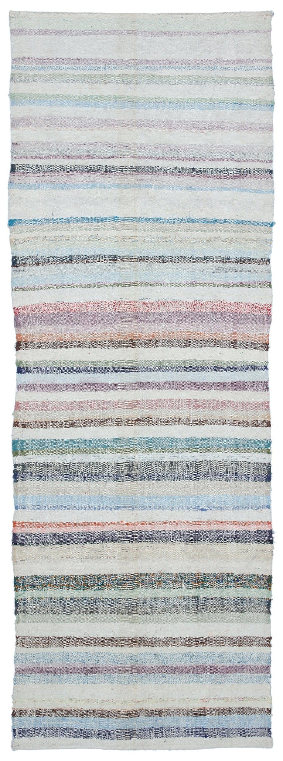 Girit Bej Çizgili Yün El Dokuma Halısı 097 x 280