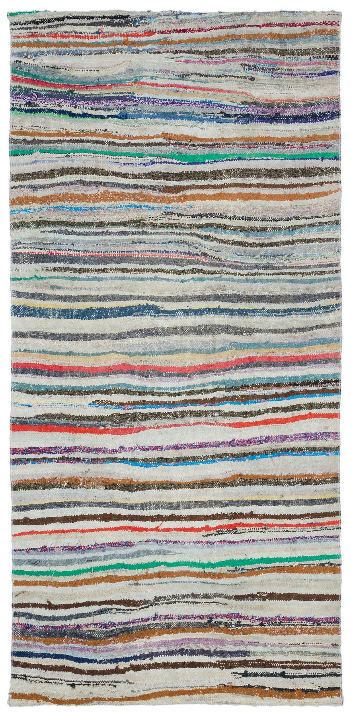 Girit Bej Çizgili Yün El Dokuma Halısı 128 x 266