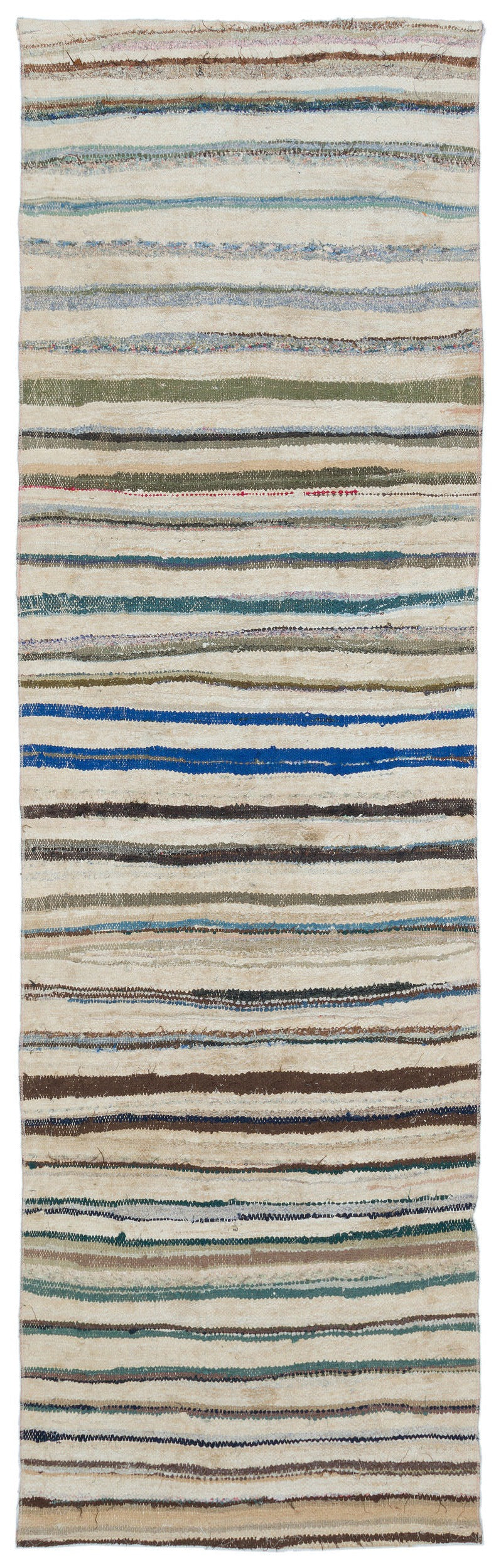 Girit Bej Çizgili Yün El Dokuma Halısı 088 x 288