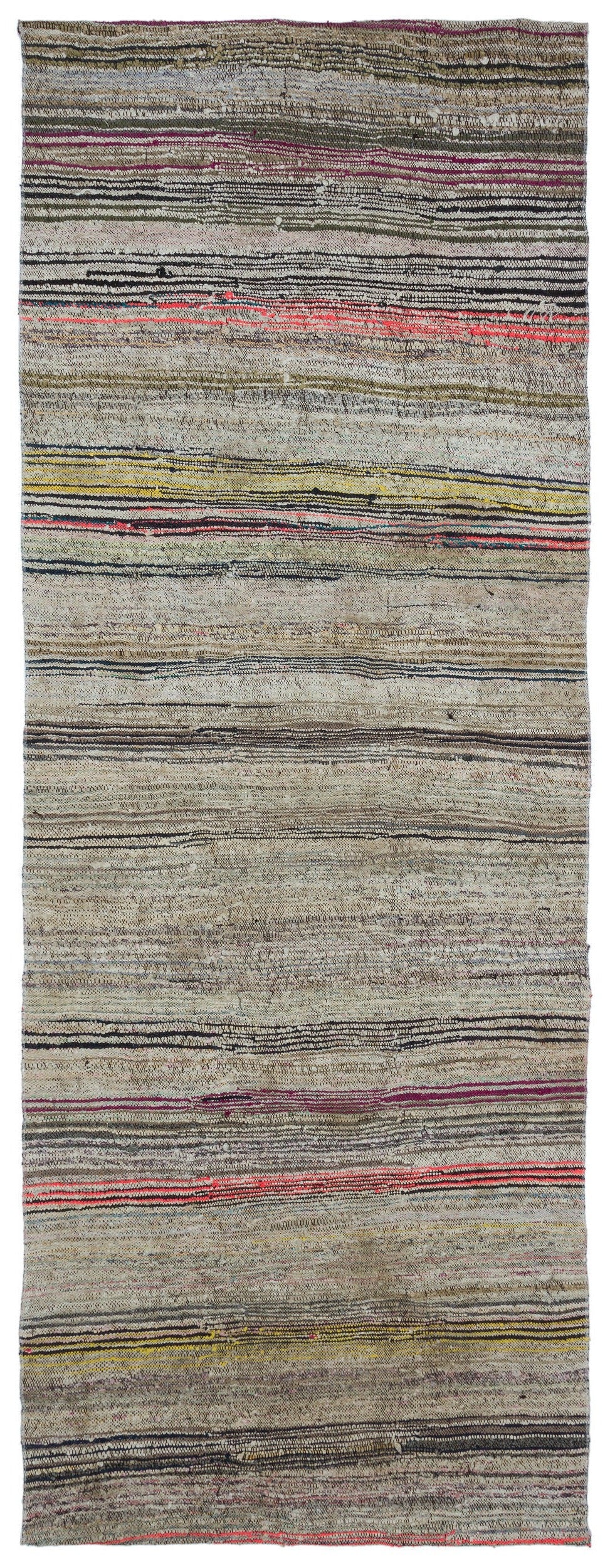 Girit Bej Çizgili Yün El Dokuma Halısı 119 x 317