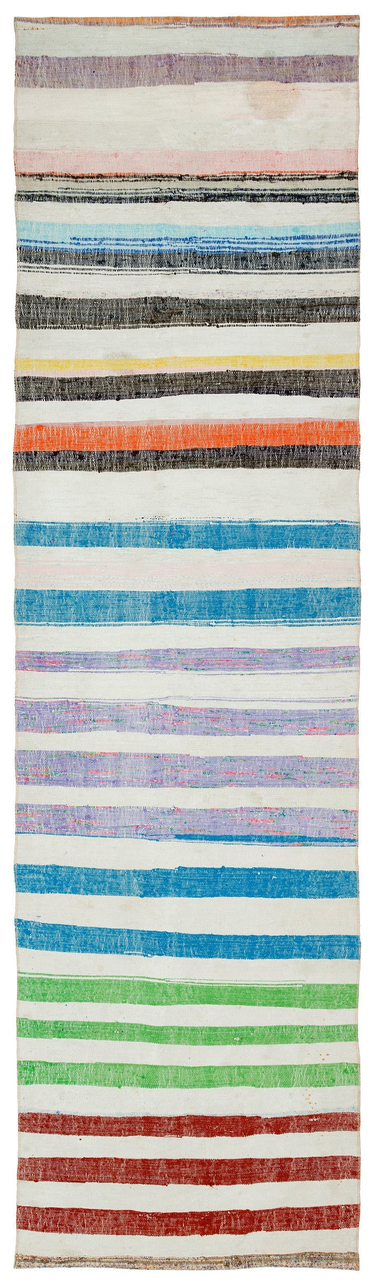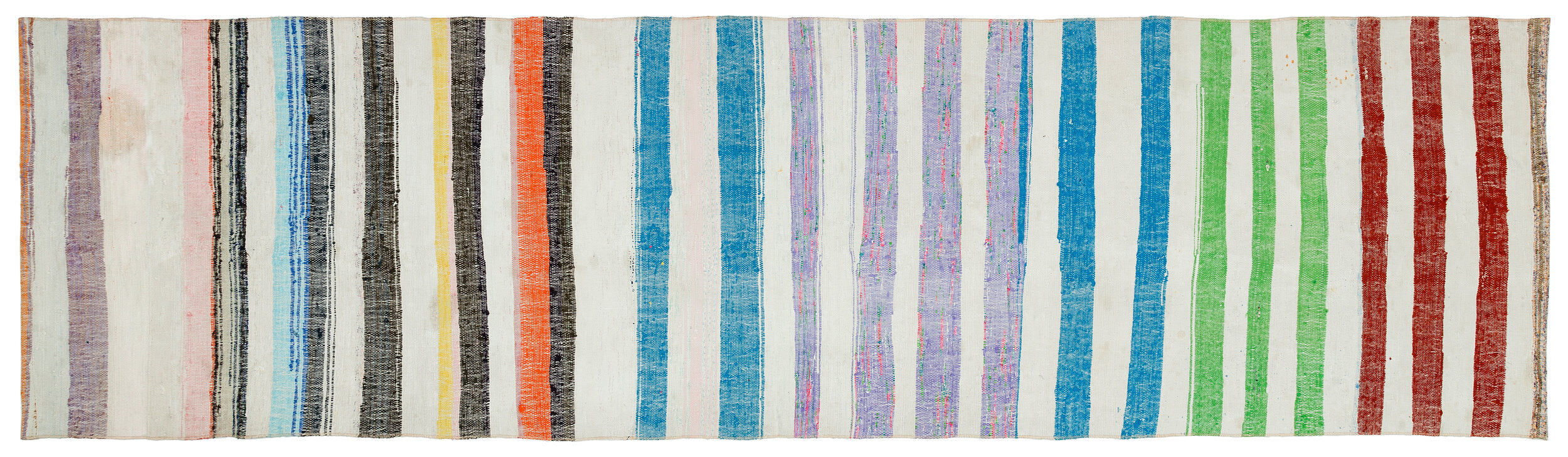 Girit Bej Çizgili Yün El Dokuma Halısı 087 x 312