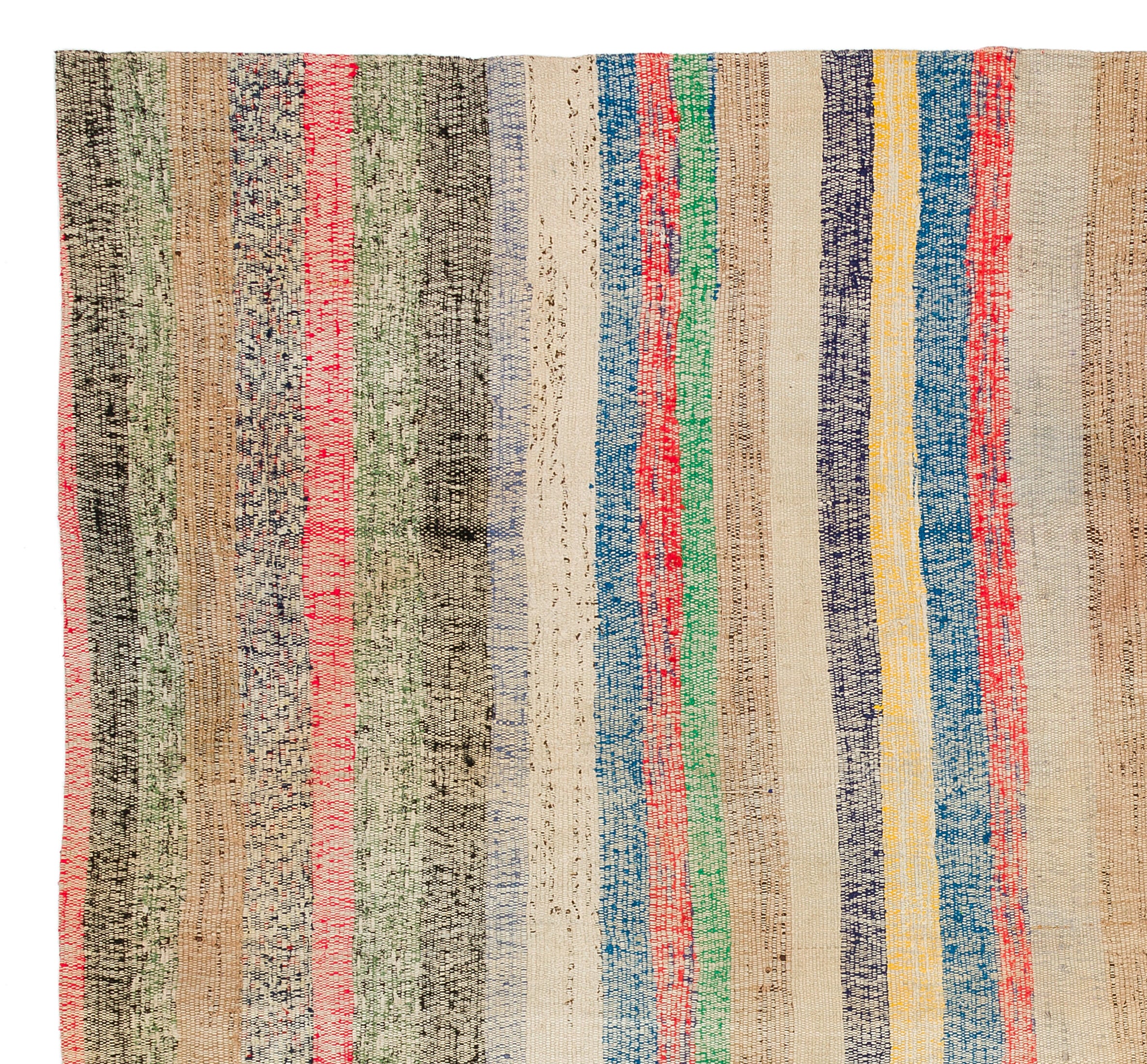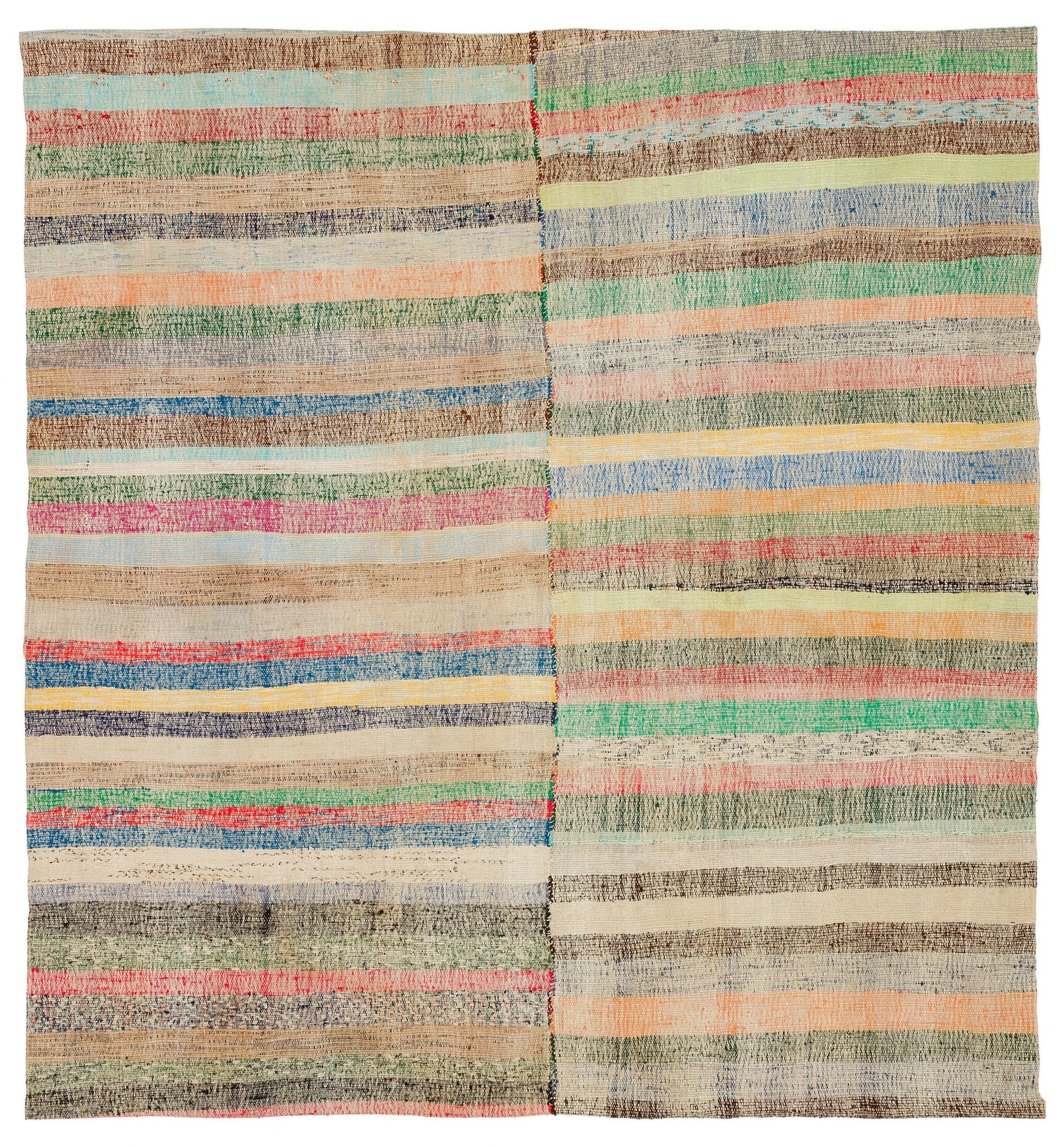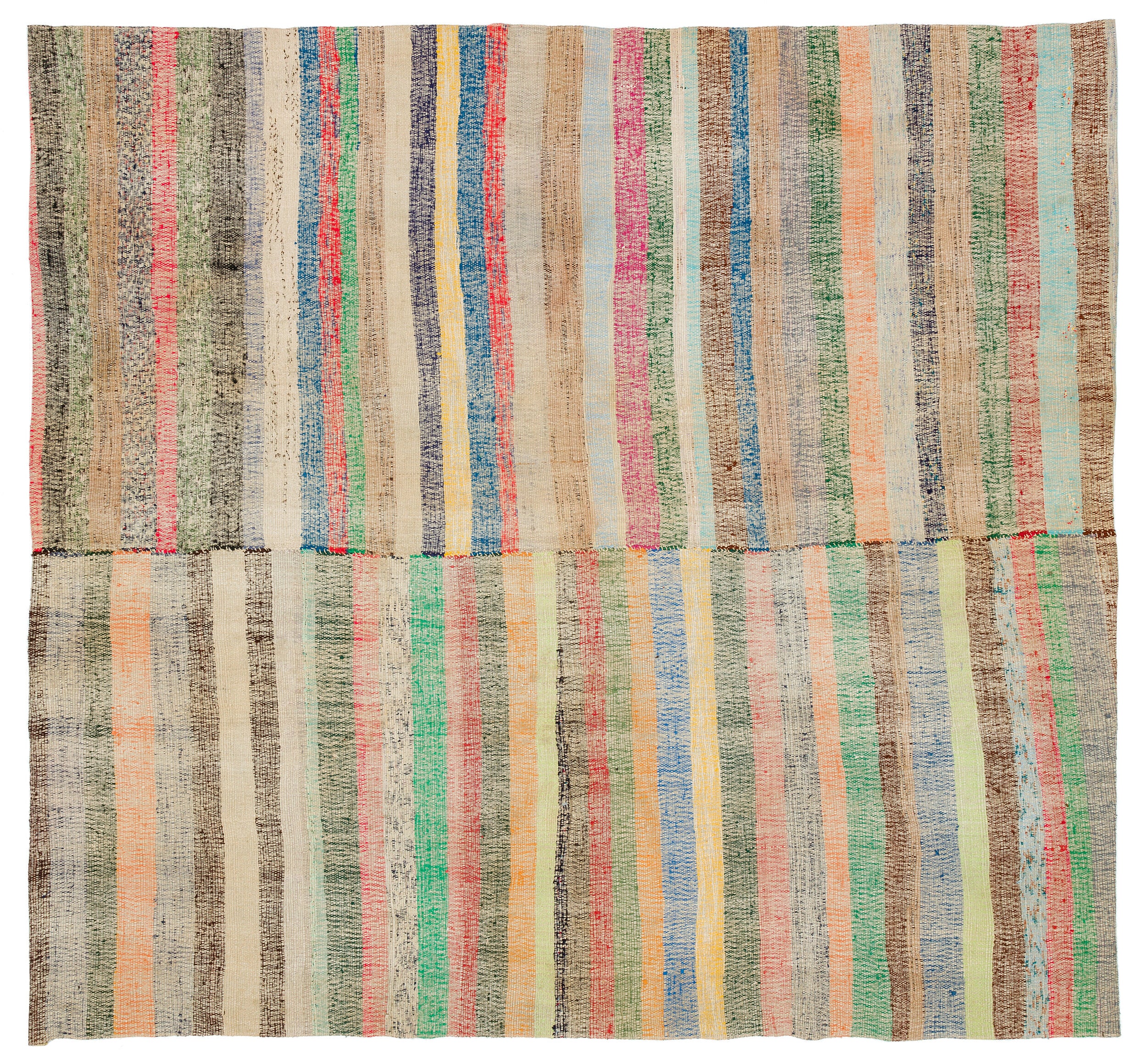 Girit Bej Çizgili Yün El Dokuma Halısı 194 x 205