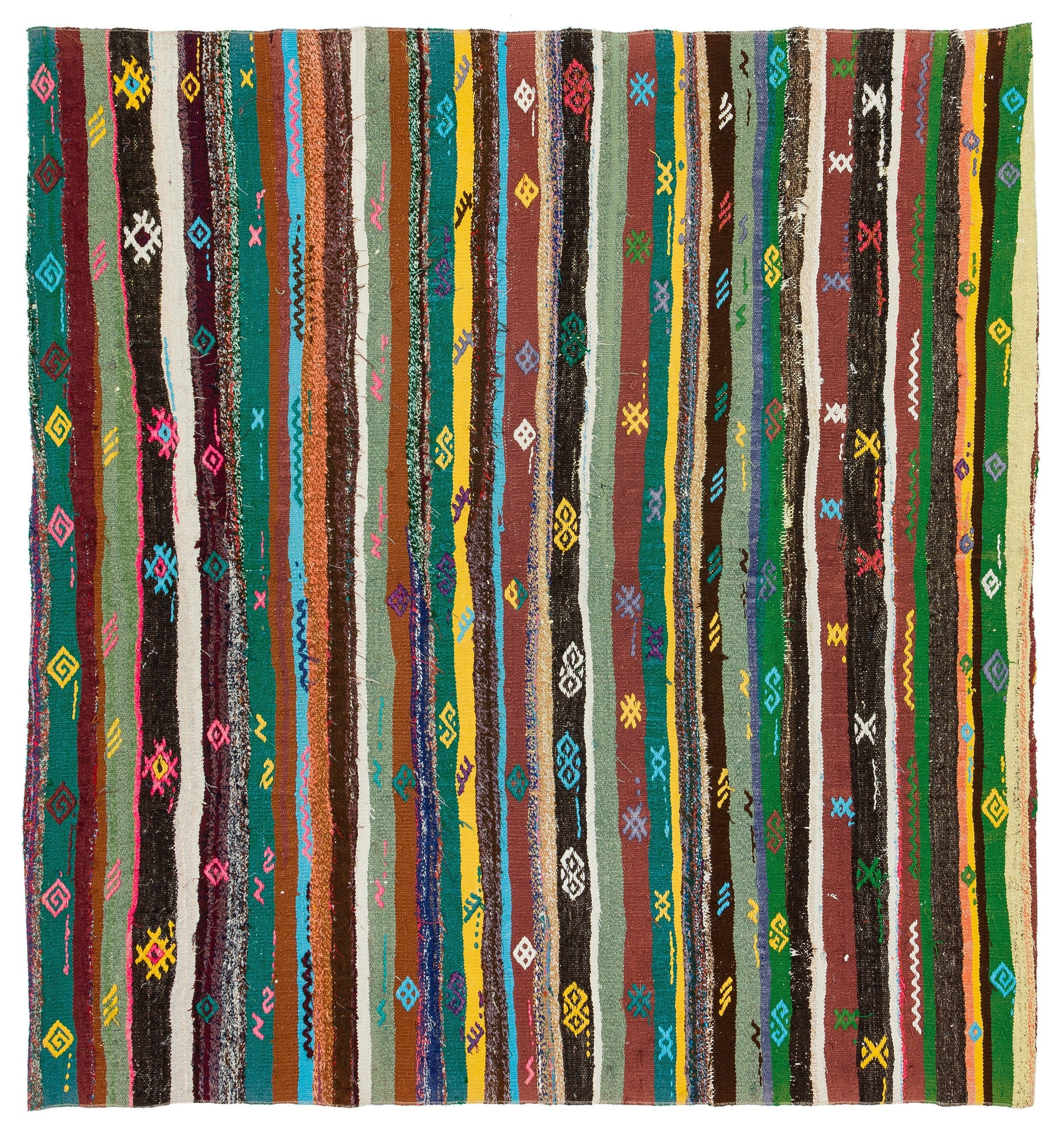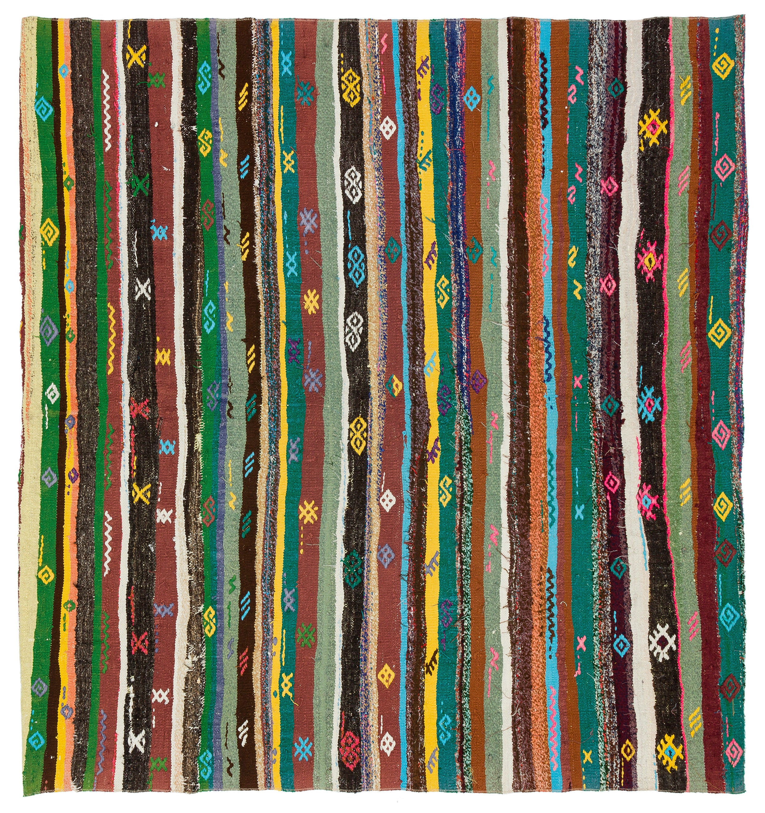 Girit Bej Çizgili Yün El Dokuma Halısı 184 x 173