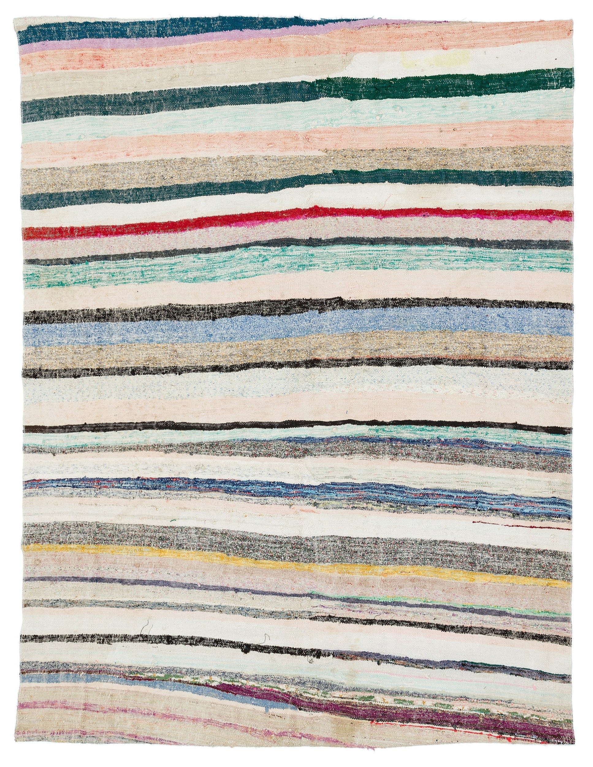 Girit Bej Çizgili Yün El Dokuma Halısı 162 x 211