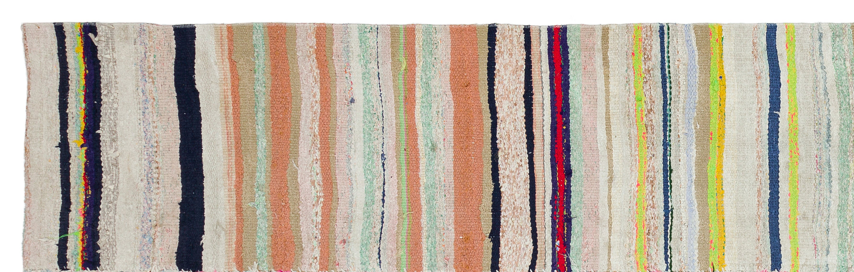 Girit Bej Çizgili Yün El Dokuma Halısı 096 x 320