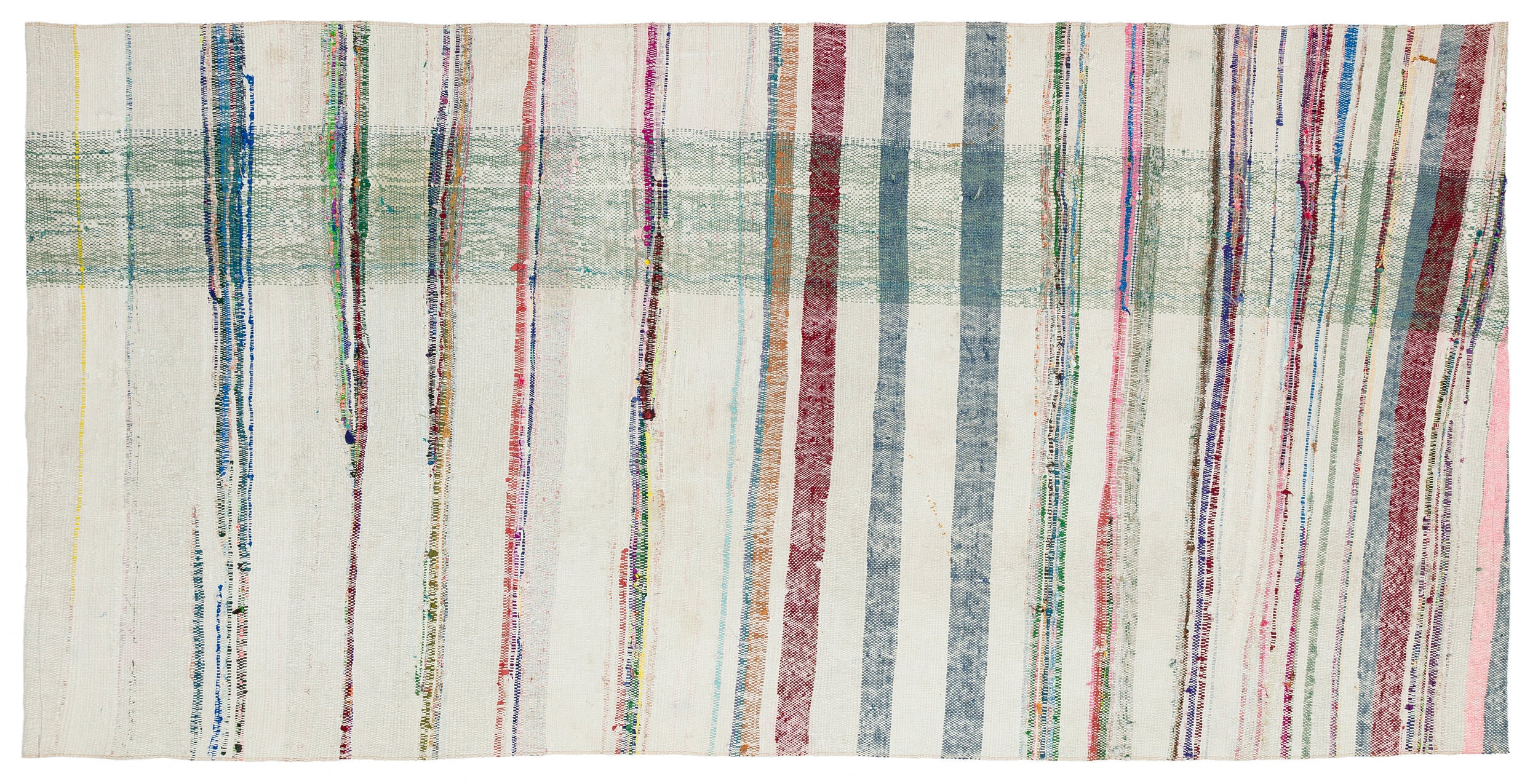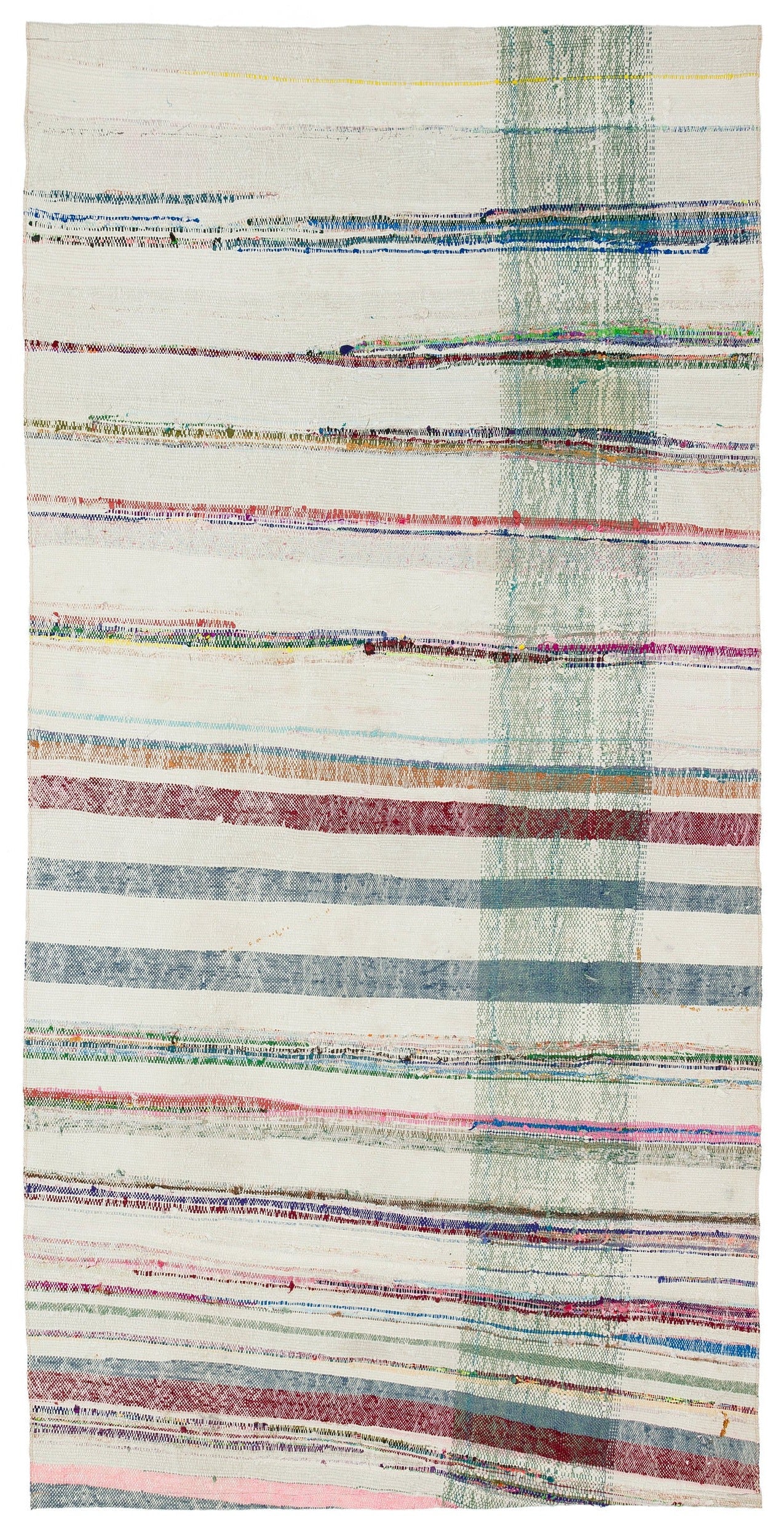 Girit Bej Çizgili Yün El Dokuma Halısı 128 x 253