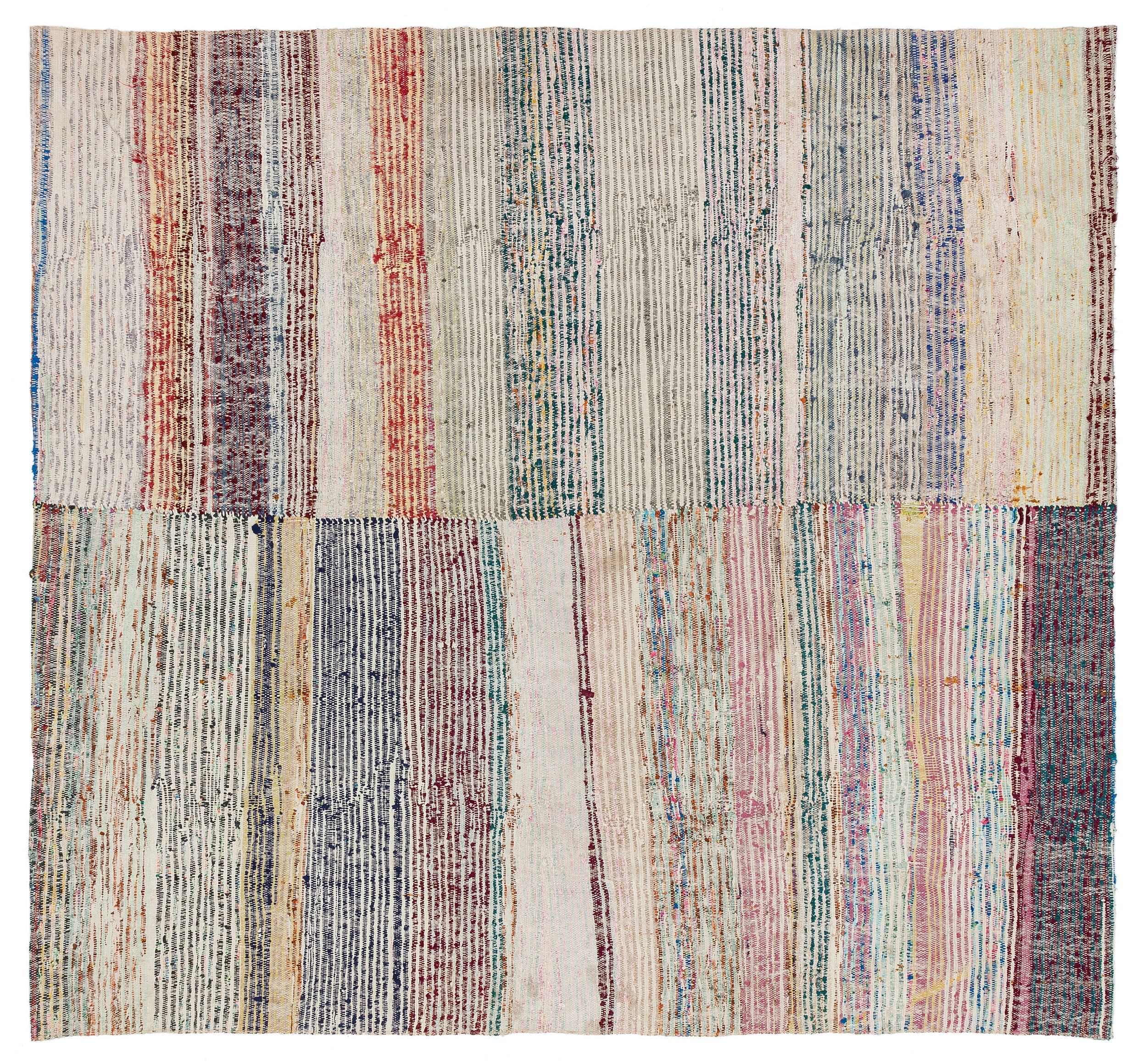 Girit Bej Çizgili Yün El Dokuma Halısı 174 x 187