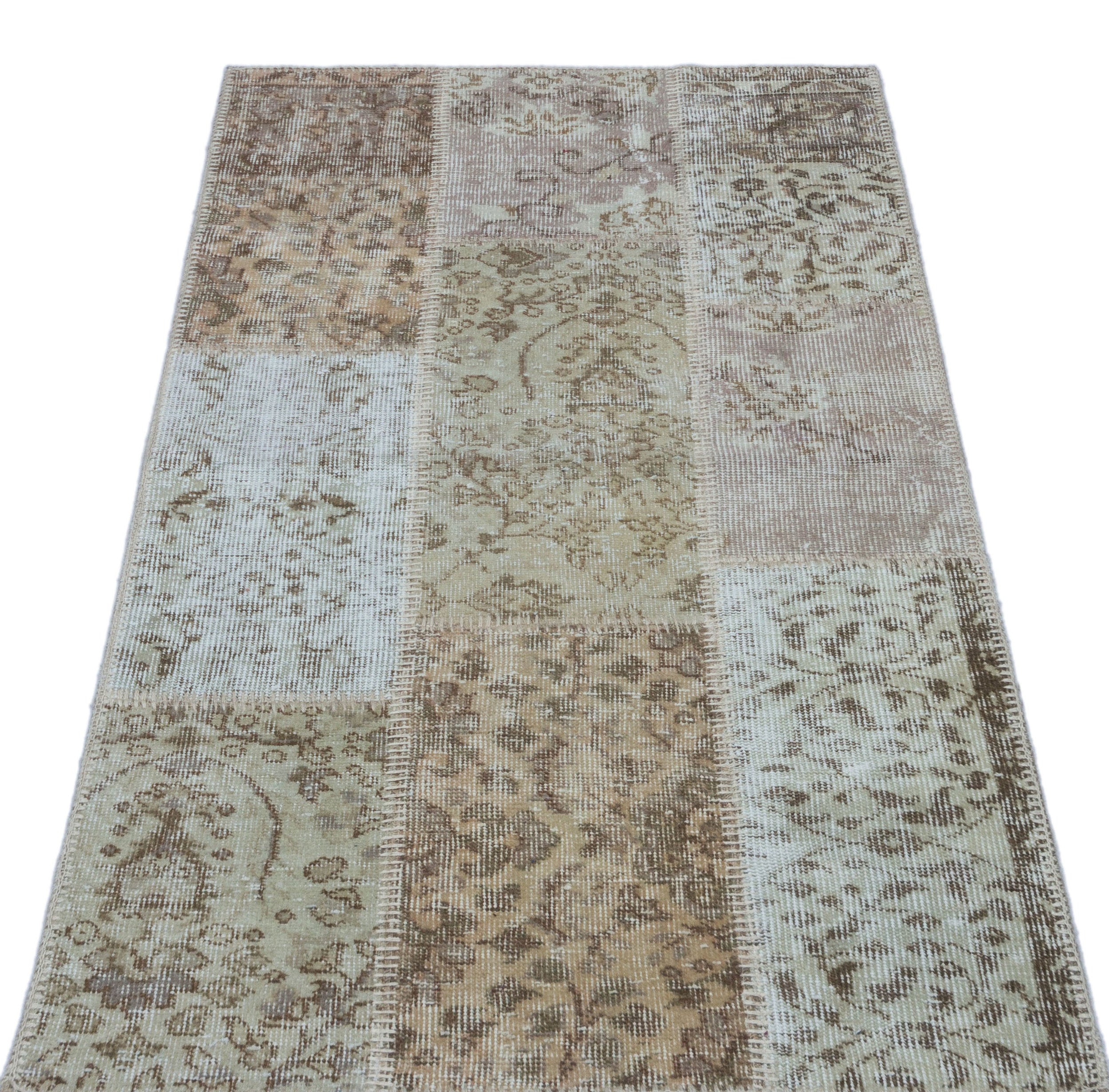 Iskece 26112 Bej Patchwork Yün El Dokuma Halısı 080 x 150