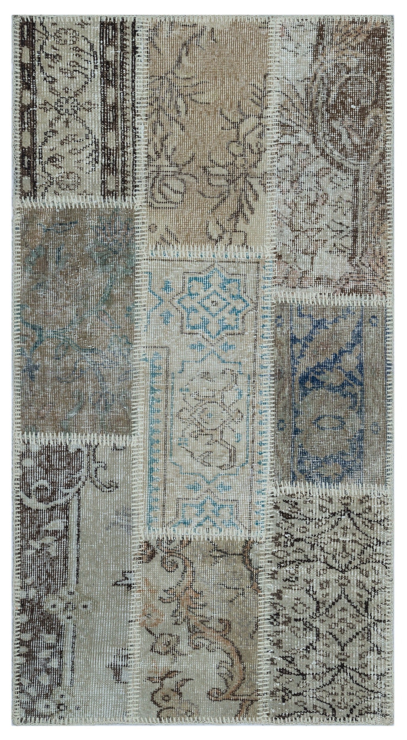 Iskece 26143 Bej Patchwork Yün El Dokuma Halısı 080 x 150