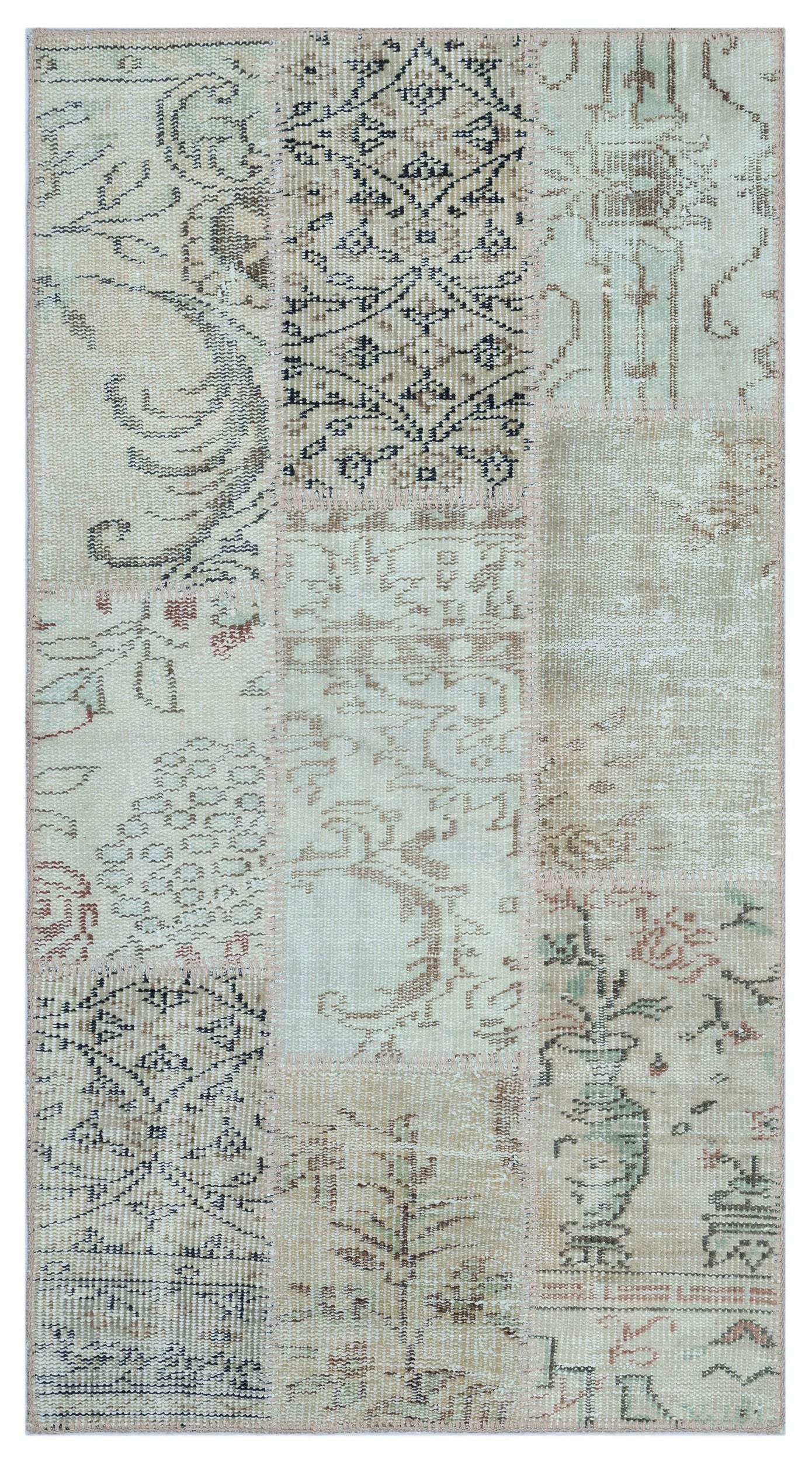 Iskece 26198 Bej Patchwork Yün El Dokuma Halısı 080 x 150