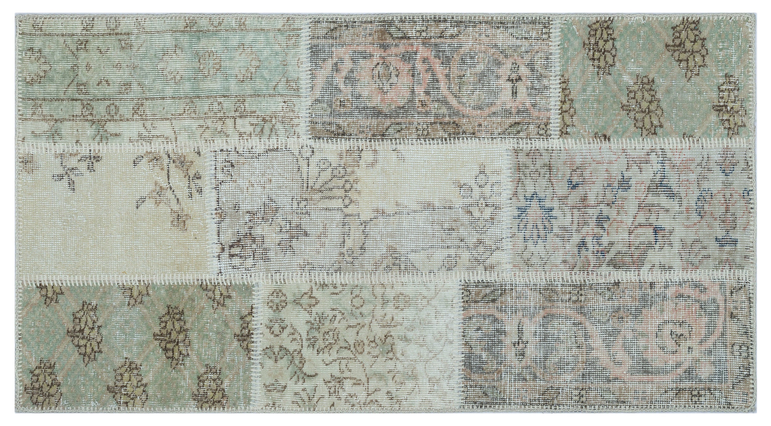 Iskece 26231 Bej Patchwork Yün El Dokuma Halısı 080 x 150