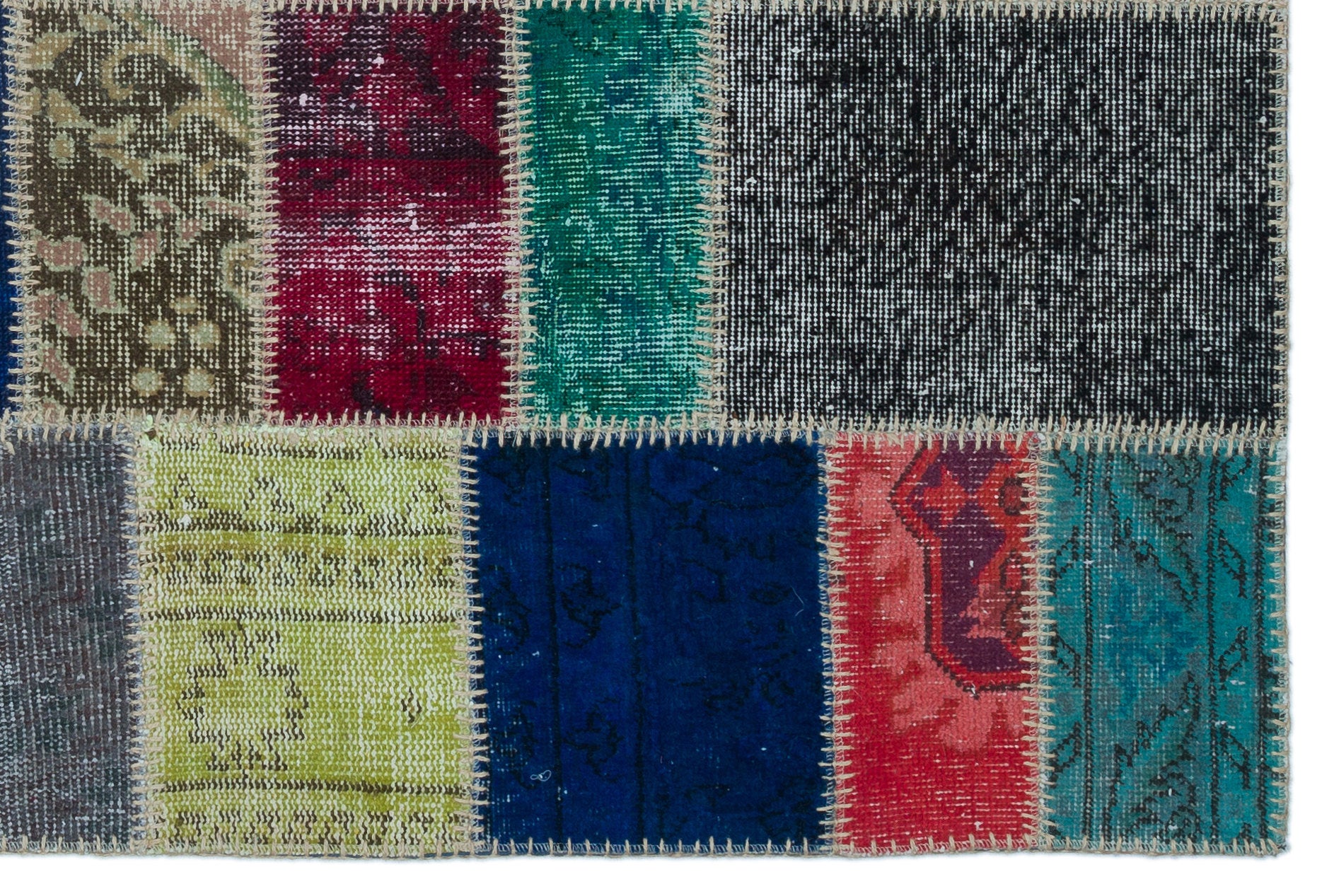 Iskece 22141 Bej Patchwork Yün El Dokuma Halısı 120 x 180