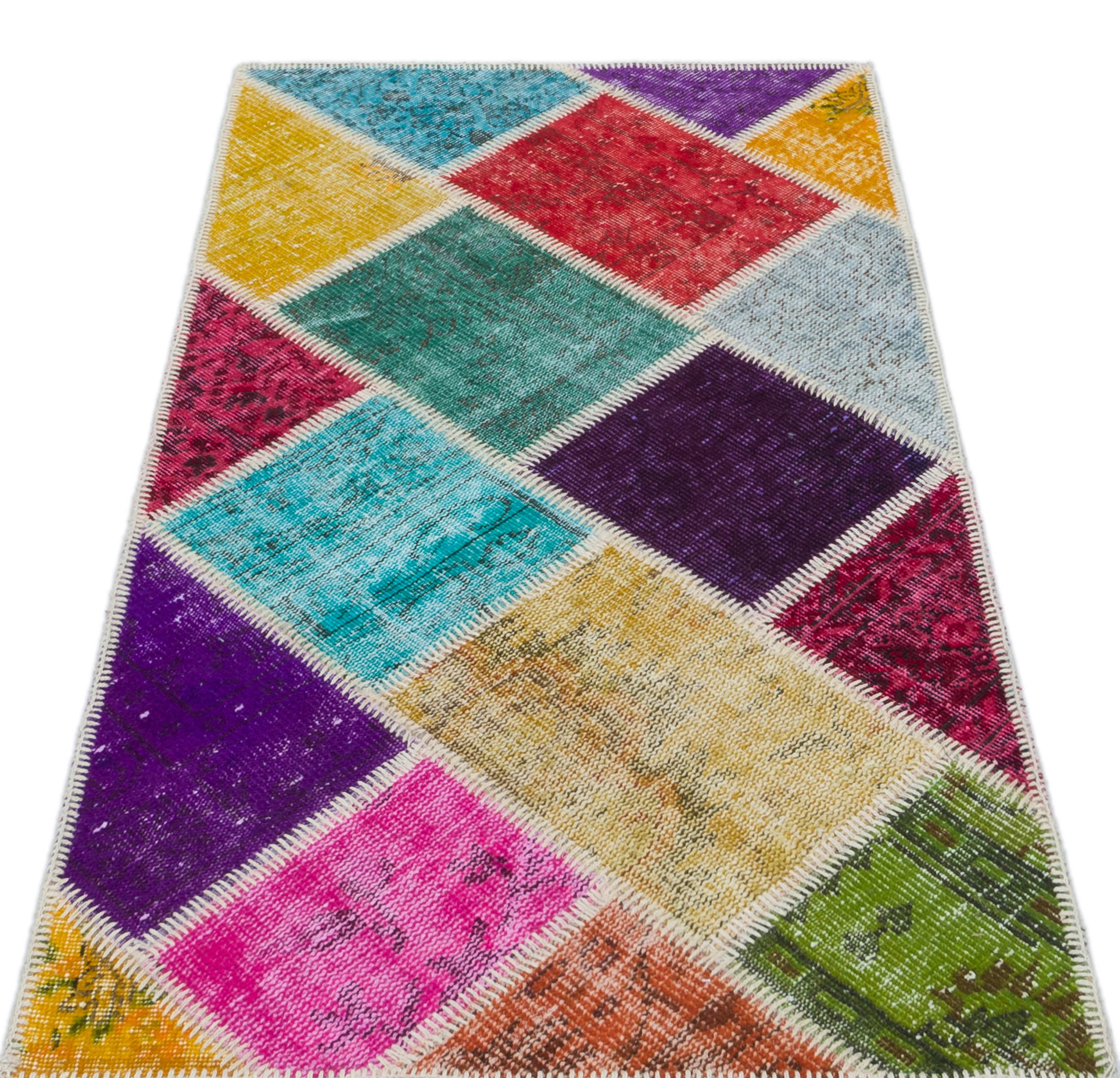 Iskece 31375 Bej Patchwork Yün El Dokuma Halısı 080 x 150